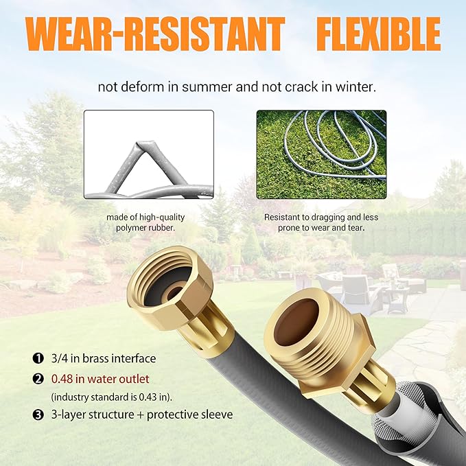 • 【Durable Material & Sturdy Performance】This retractable garden hose reel consist of reinforced polypropylene shell, rubber water hose and brass interface, this retractable garden hose reel for outside well fit for rain, snow, sun, corrosion etc. This 5/8 inch 75ft retractable garden hose reel can well withstand to 200PSI water pressure and 600PSI bursting pressure.
