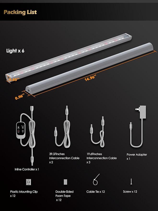 • Modular Light Design& Easy Installation:This modular grow light can be easily expanded using interlinkable cables. Each unit includes fixed 15° adjustable mounts for precise light targeting, reducing glare and ensuring comfortable indoor use.It includes screws, zip ties, tape, and interconnect cables in two lengths(19.68" and 39.37") for flexible installation.