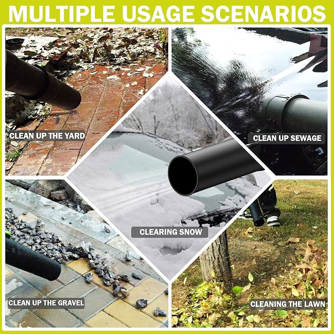 • 【Five speed wind speed adjustment】:Sihuird Leaf Blower Adopting five levels of wind speed adjustment, the wind speed is automatically locked, allowing you to free up your hands at work. Different wind speeds allow you to cope with more environmental use. Sihuird Leaf Blower, as a reliable assistant for families, has a maximum wind speed noise of only 56 decibels, allowing you to use it with peace of mind during holidays without worrying about disturbing your neighbors.