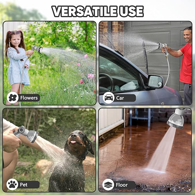 • 【10-Pattern Spray Nozzle for Versatility】The retractable garden hose reel comes complete with a 10-pattern spray nozzle, built to handle all your watering and cleaning needs. Switch between mist, shower, jet, and other modes to tackle tasks like plant care, car washing, pet bathing, lawn watering, and patio cleaning effortlessly.