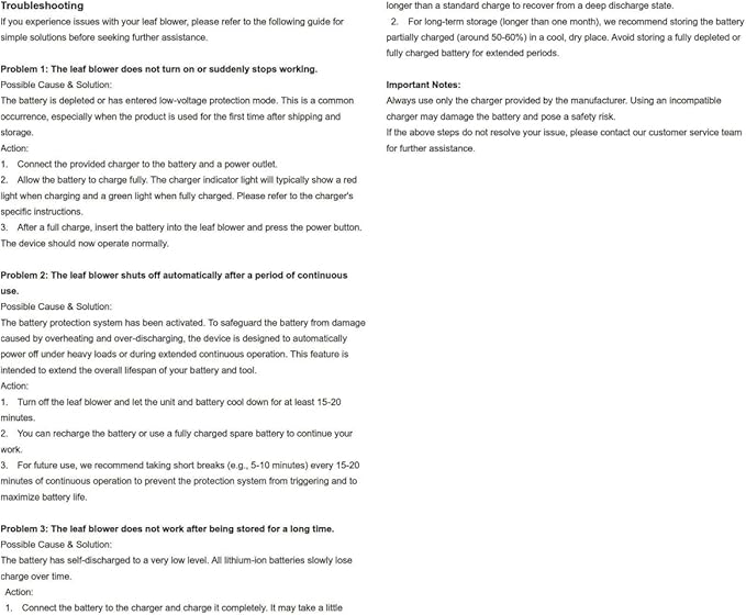 • ALL-SEASON RELIABILITY & QUIET OPERATION: Engineered for durability with a brushless motor and noise-reduction tech (≤75 dB). Includes battery, charger, and nozzle attachment. Hassle-free 1-year warranty included.