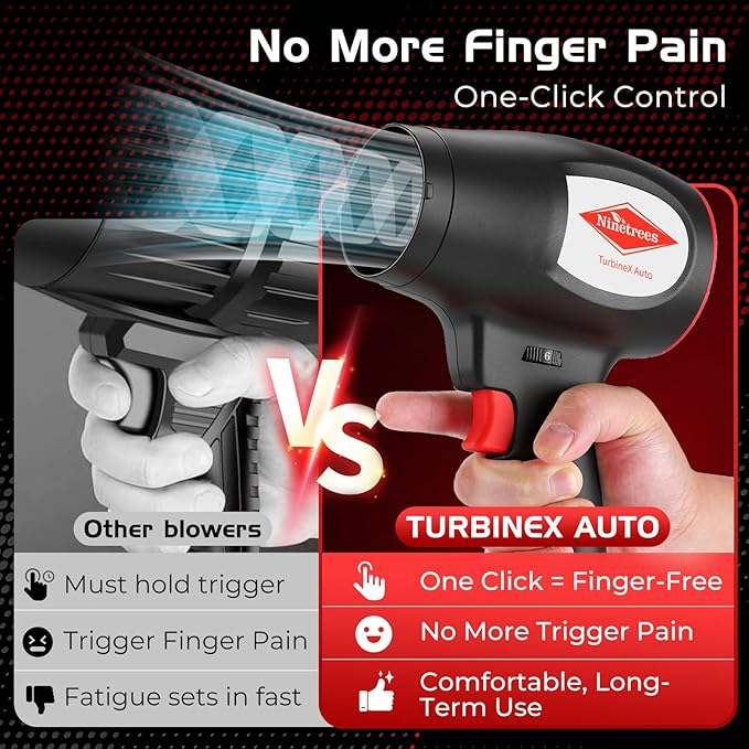 • ONE-TOUCH LOCK MODE FOR HANDS-FREE OPERATION: Say goodbye to finger fatigue! Our leaf blower features an innovative switch control valve—press once to lock the airflow for continuous use and press again to stop. Perfect for extended yard cleanups.