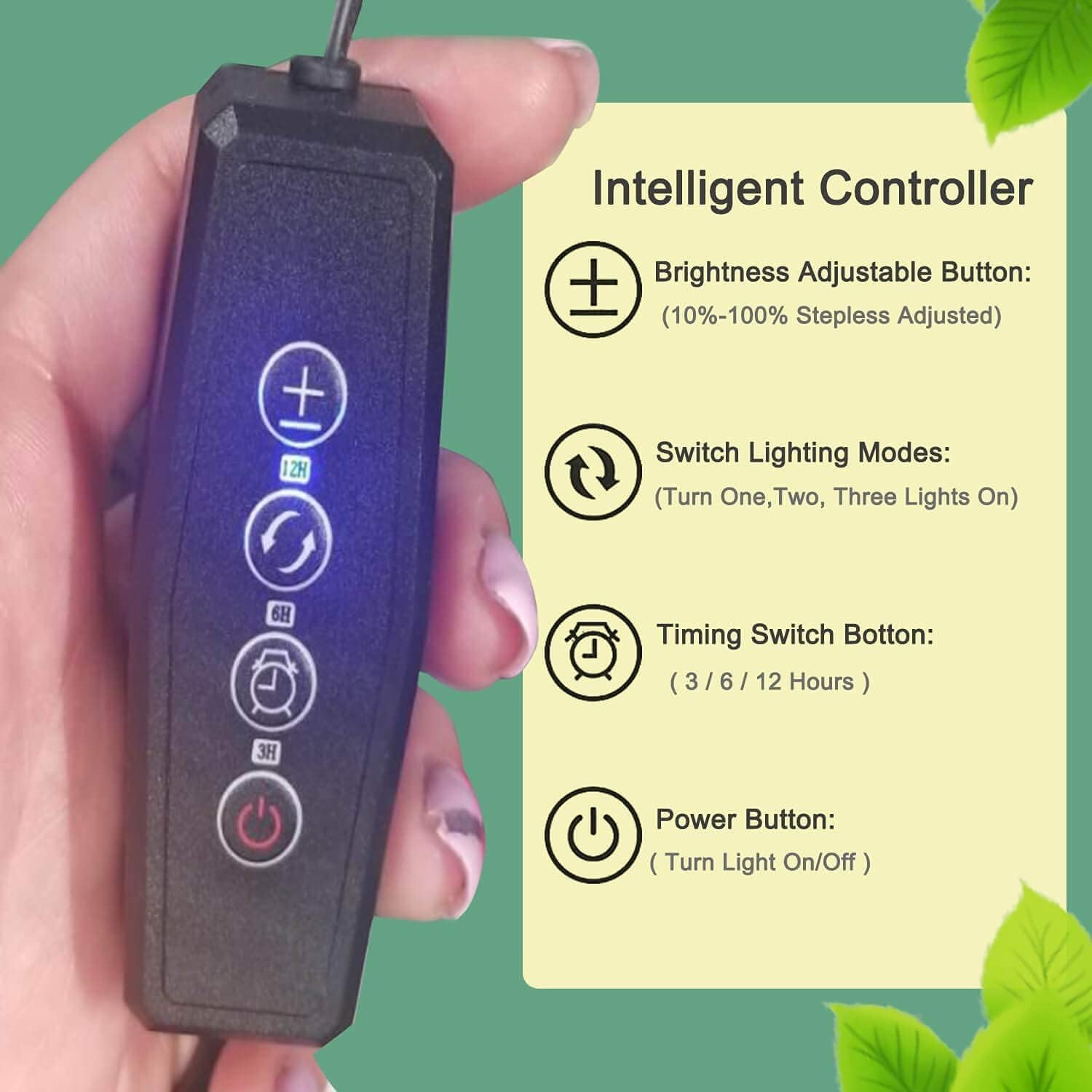 Plant Grow Light,Grow Light for Indoor Plants with 20-60'' Height Adjustable- Full Spectrum Timer, 3 Switch Modes, Adjustable Tripod Stand & Gooseneck for Larger Plants (Tri Heads)