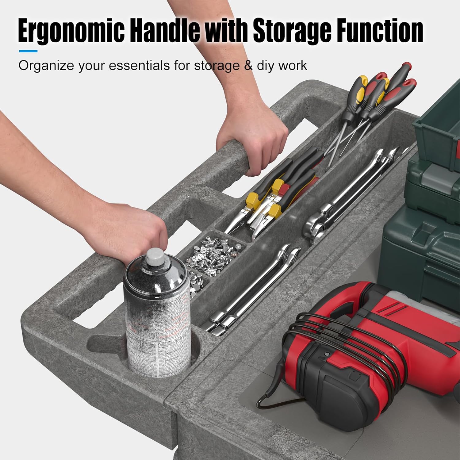 • Spacious Flat Top: Features a large 46-inch flat top surface, offering ample space for organizing and working with tools, supplies, and equipment.