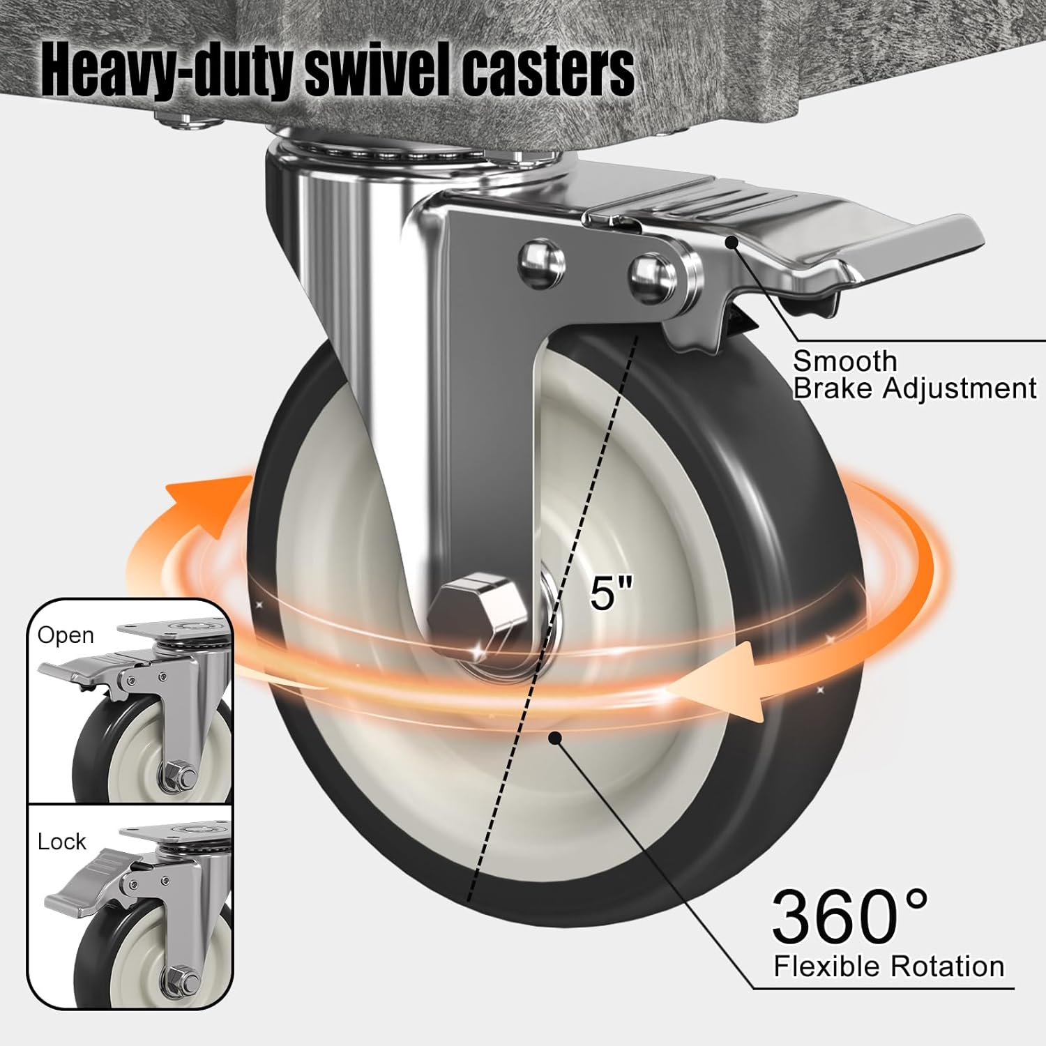 • Effortless Mobility: Equipped with 5-inch swivel casters, allowing smooth and easy movement across different surfaces with minimal effort.
