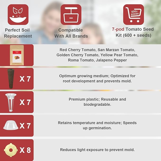 Heirloom Tomato Seed Pod Kit for AeroGarden, idoo, Ahopegarden, MUFGA with Red Heirloom/Golden Harvest Cherry Tomato, Roma/San Marzano/Yellow Pear Tomato - Hydroponics Supplies for Most Brand (7-pod)