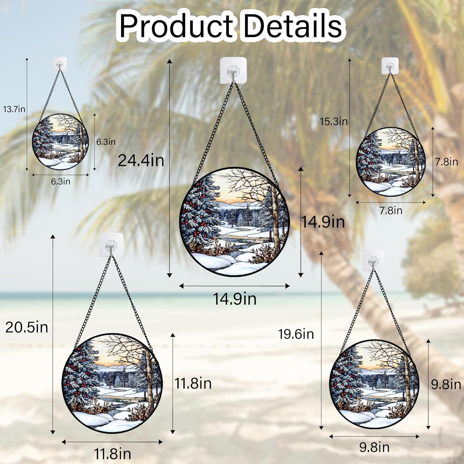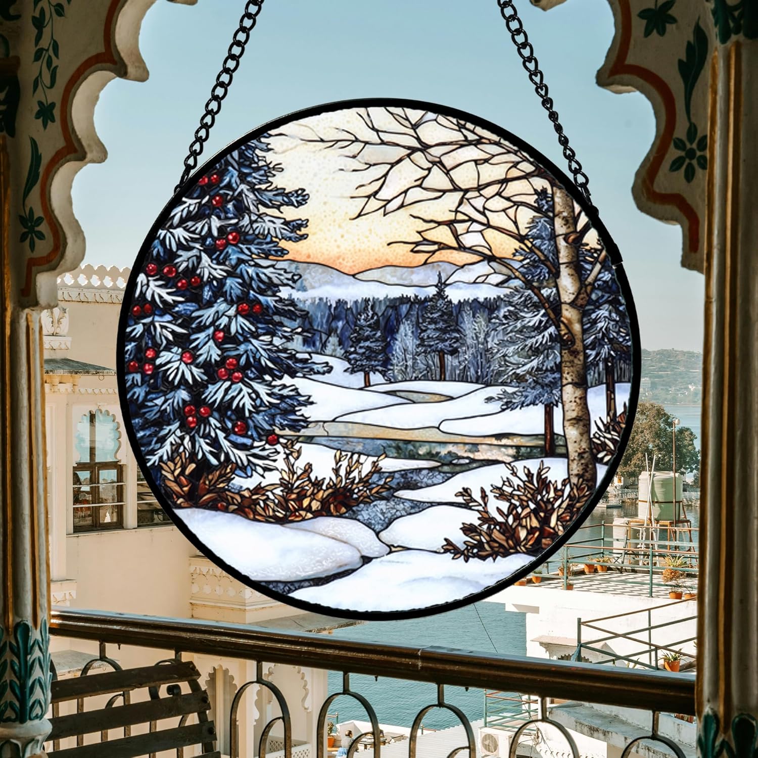 Stained Glass Window Hanging, Winter Snow Landscape Suncatcher Diamond Glass Panel Sun Catchers Decor for Birthday for Women, Men, Wife, Aunt, and Mom 14.9 in