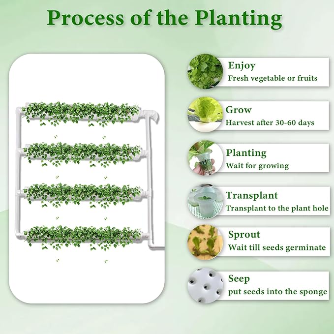 • ▲EASY TO ASSEMBLE AND USE: This hydroponic gardening system is extremely easy to assemble and use; suitable for beginners with no prior experience; It saves time and effort by eliminating the need for tilling, making it suitable for both indoor and outdoor use.