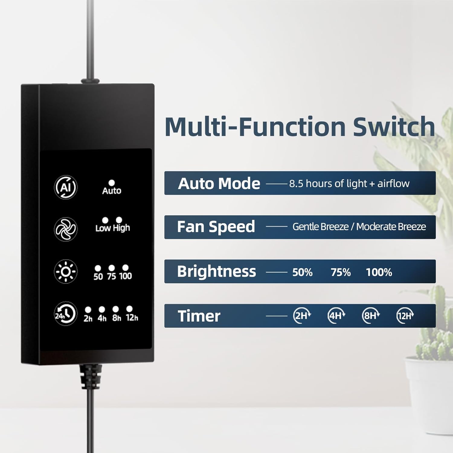 • INDOOR PLANT GROW LIGHT WITH FAN: Our indoor plant light with 15W led grow light and 5W integrated grow fan can provide your plants with light and ventilation at the same time, providing two wind speeds of soft wind and breeze, which can provide your plants with the necessary ventilation to enhance photosynthesis