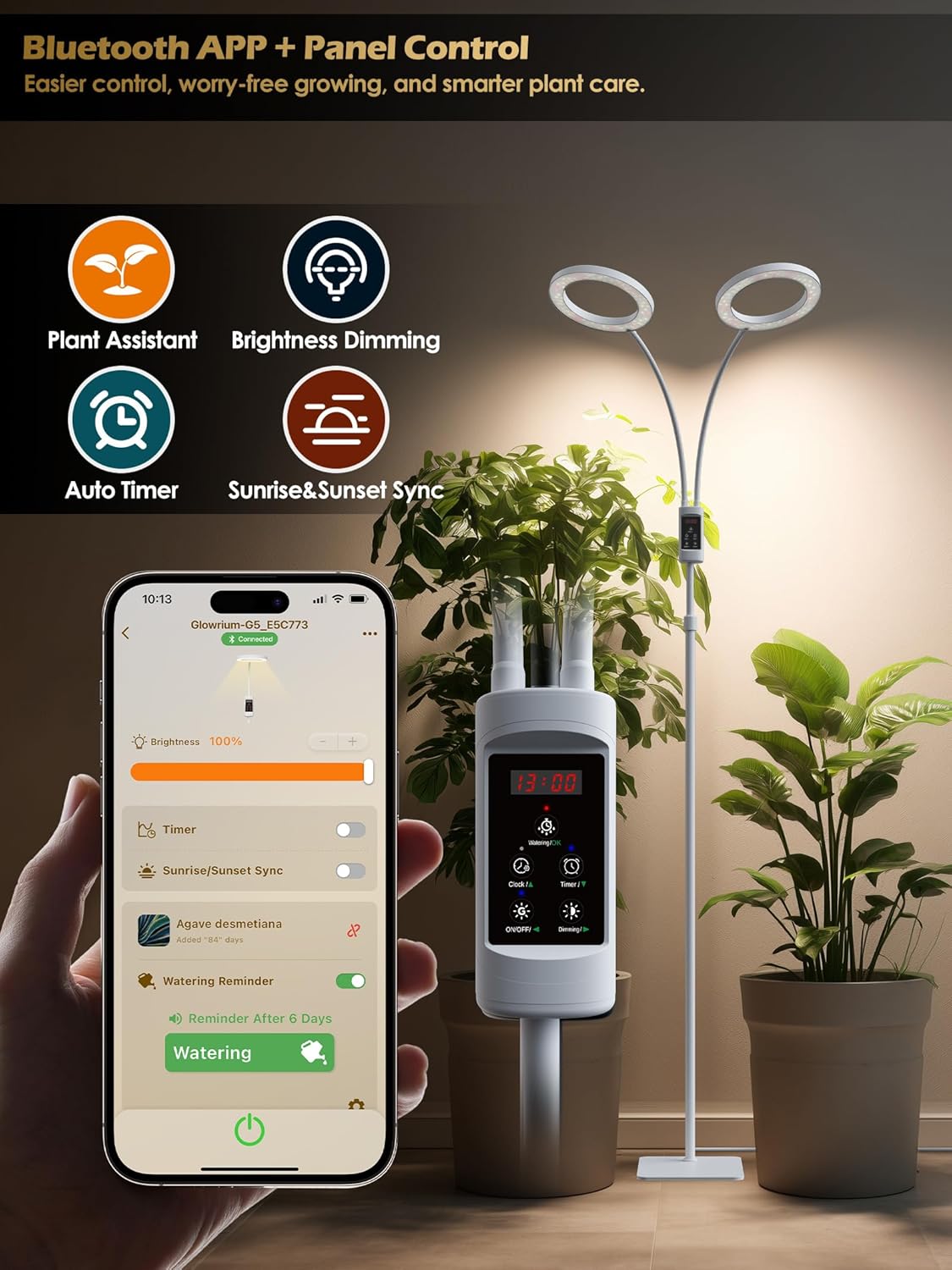 • 【Personalized Timer & Sunrise&Sunset Sync】Set two separate lighting schedules per day to match your routine, or sync with local sunrise and sunset times for a more natural light cycle—perfect for mimicking nature and supporting healthy plant growth.