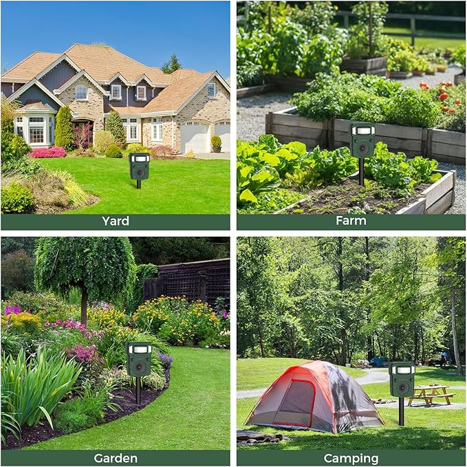 • Humane and Safe Pest Control - Using a purely physical deterrent method, this device safely repels animals without harming them. It provides continuous, chemical-free protection for lawns, farms, gardens, and outdoor spaces, making it an eco-friendly alternative to traps and chemicals