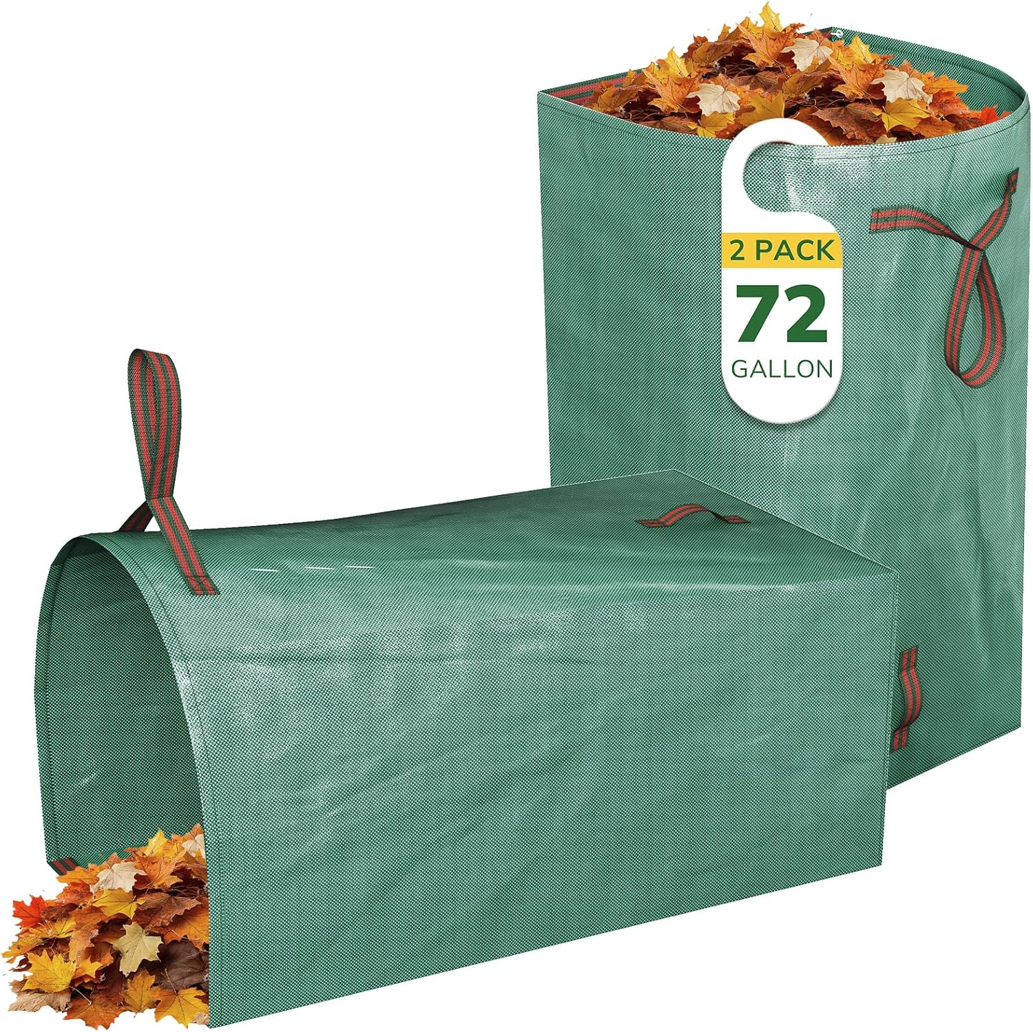 GreatBuddy Lawn Bag, 72 Gallon Yard Waste Bags, Heavy Duty PP Garden Leaf Bags for Leaves, Grass and Debris, Reusable & Foldable Leaf Collector with Handles, Wide Opening and Self-stand Design, 2 Pack