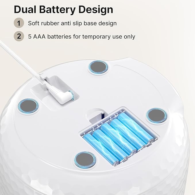 - Dual Power Supply Options: Enjoy the convenience of both a standard 5V power adapter and a battery-powered option (5x AAA batteries, not included). The battery backup is ideal for short-term use or during power outages, because prolonged use may incur higher costs.
