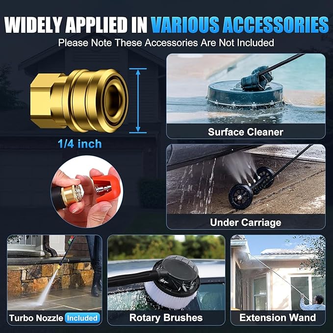 • 5000PSI Powerful Washing Power:This heavy duty pressure cleaner provides a water pressure of up to 5000 PSI and a water flow rate up to 4.0 GPM,ensuring superior cleaning performance. The robust motor pump is engineered for durability,reducing maintenance requirements while enhancing efficiency. Ideal for removing the most stubborn grime from decks,yards, driveways,vehicles,and so on, this machine integrates high-pressure cleaning with low water consumption, delivering optimal benefits.
