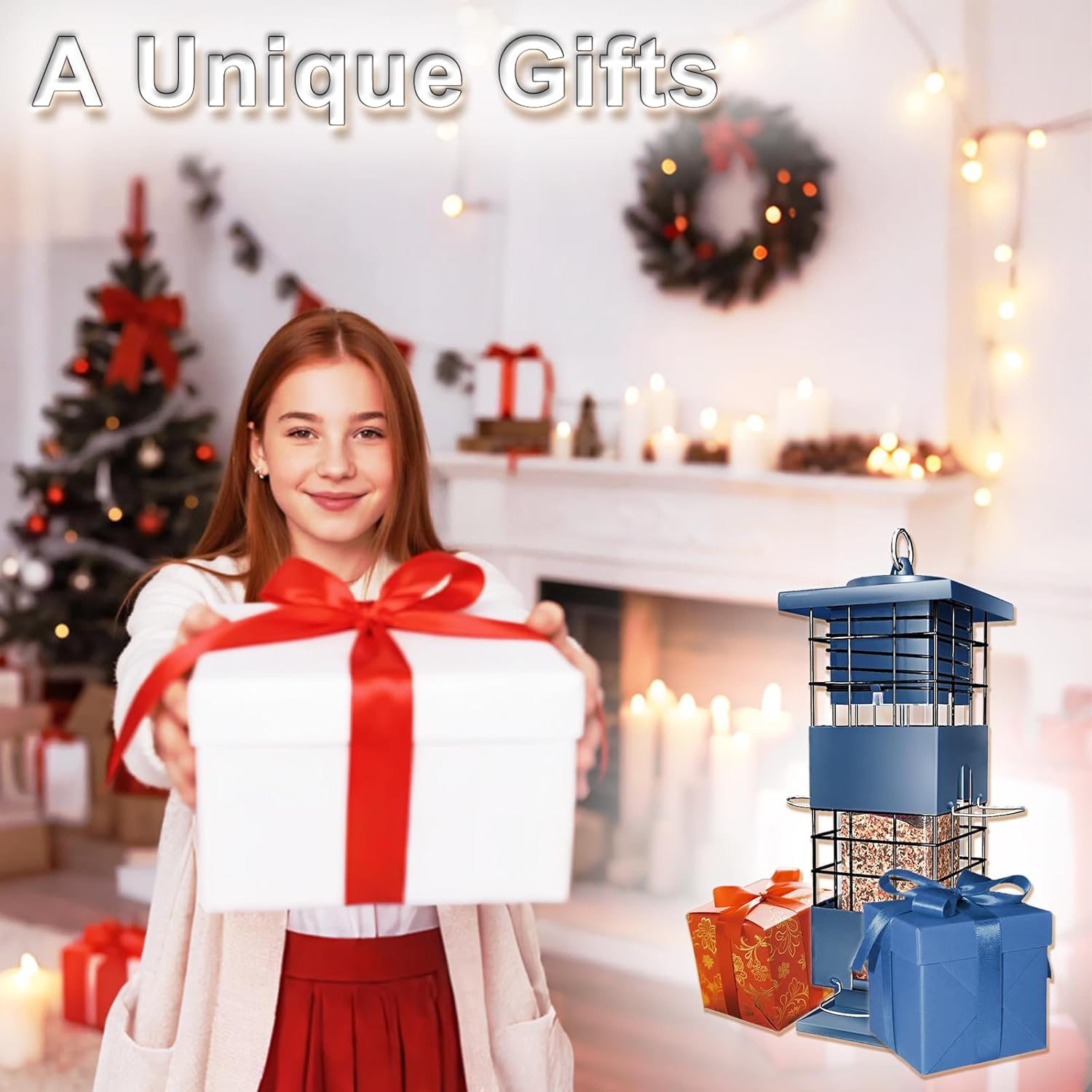 • Attractive Bird Feeders Outside Hanging: Our unique Anti Squirrel bird feeders not only keeps squirrels away, and be hung anywhere around your yard, on tree branches, poles, under the eaves, etc. to attract more wild birds such as cardinals blue jay Hummingbirds finches starlings and more to your yard, providing you, your parents and your children with the opportunity to observe birds up close and enjoy hours of bird watching fun.