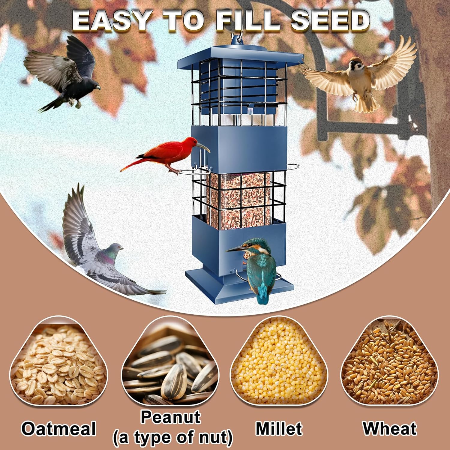 Squirrel Proof Bird Feeder, 3.5Lbs Large Capacity Metal Squirrel-Proof Bird Feeders for Outdoors Hanging, 4 Feeding Ports Wild Bird Feeders with Gravity Protection for Finch, Cardinal, Blue Jay