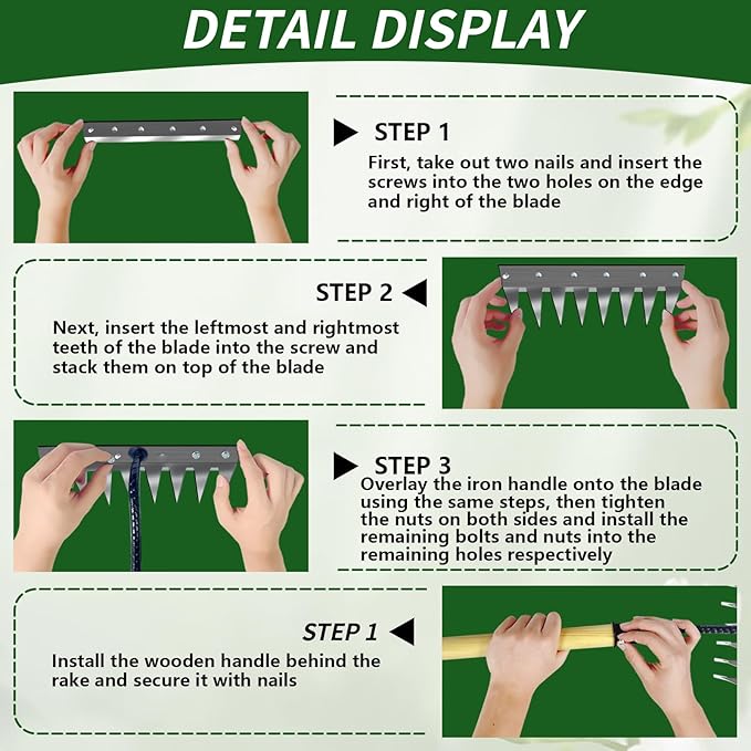 • 【Multi functional weeding tool】Featuring multifunctionality and high efficiency, this heavy-duty garden tool rake efficiently removes stubborn weeds, loose soil, and dry hay. Ergonomically designed with an extendable and detachable wooden handle, it excels at navigating weeds in gardens and lawns while operating seamlessly in narrow spaces. Additionally, it performs perfectly in sturdy soil environments, enhancing versatility.