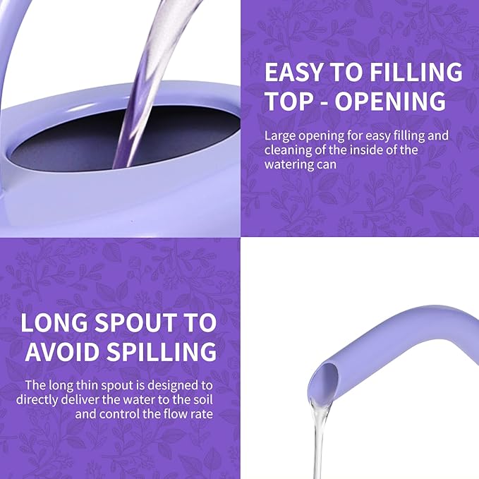 • [Long Precision Spout] Our watering can for indoor plants comes with a long, narrow spout that effortlessly reaches deep into plant roots, even under dense leaves. It delivers water precisely to target areas, avoiding splashing or overwatering—perfect for indoor plants, bonsai, and hard-to-reach spots in gardens. The fixed spout (non-removable) ensures stable water flow, making every watering efficient and mess-free.