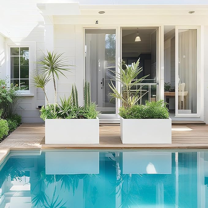 Galvanized Steel Garden Planter 36” x 12” x 16” White Metal Planter Box Modern Metallic Heavy Planter Indoor & Outdoor, Commercial & Residential (White, L36 x W12 x D16)