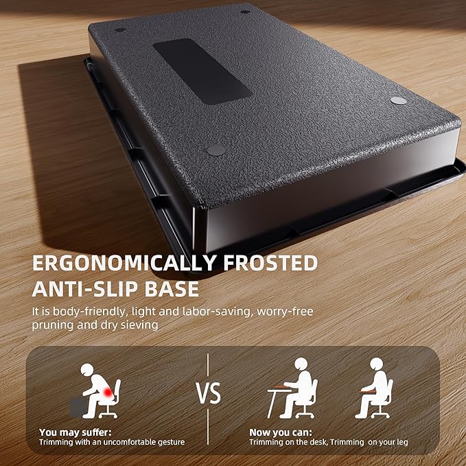 • MAXIMIZE YOUR HARVEST, MINIMIZE WASTE: The dual-layer trimming tray system efficiently sifts and collects fine plant material and pollen that would otherwise go to waste. Every trim session becomes more rewarding when nothing gets lost