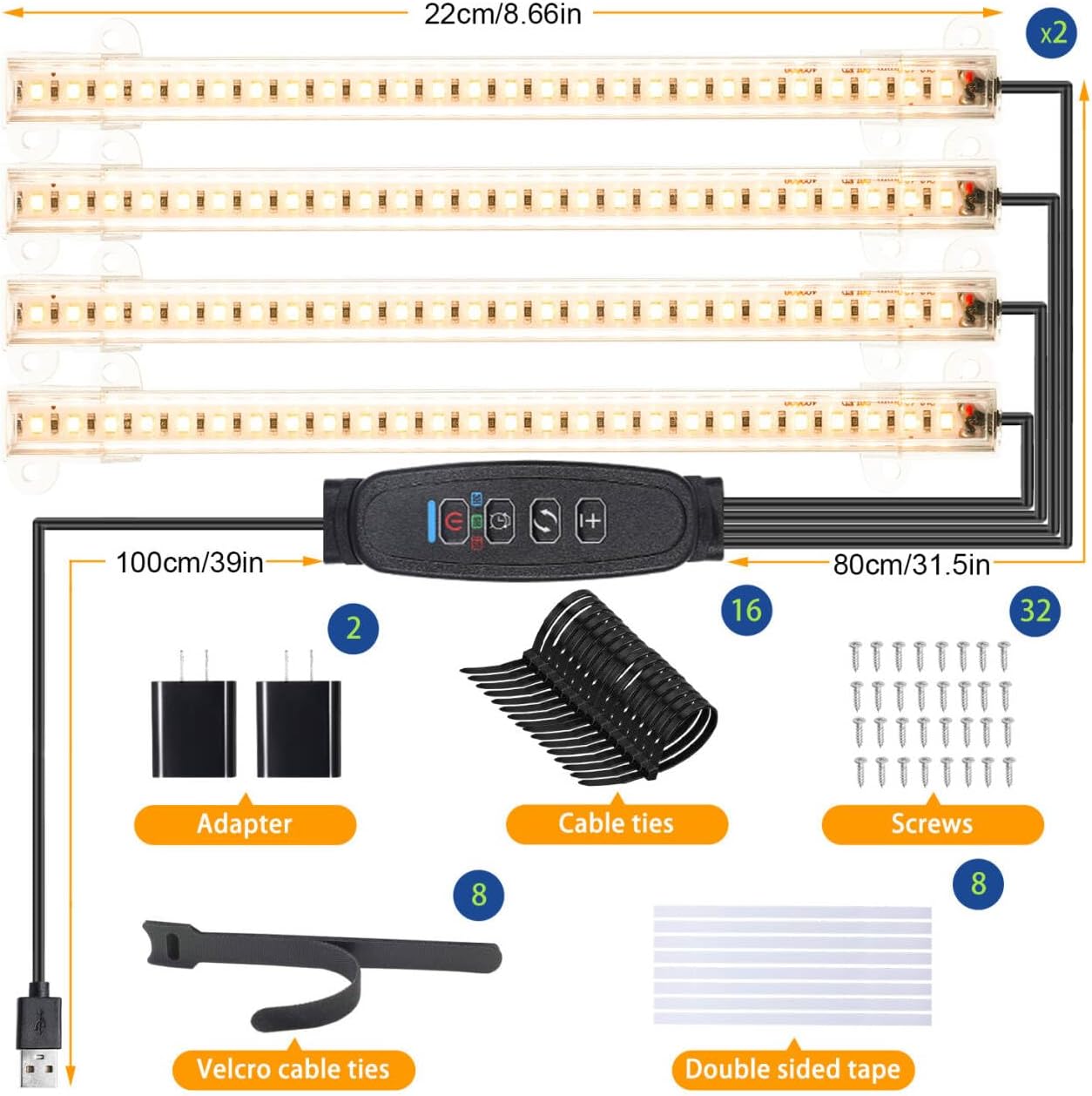 8.6'' LED Plant Growing Light Strips, Full Spectrum 3500K Grow Light for Indoor Plants with 3/9/12H Timer, 10 Dimmable Levels for Seedling Succulent and Plant Shelf, 4 Head 2 Pack