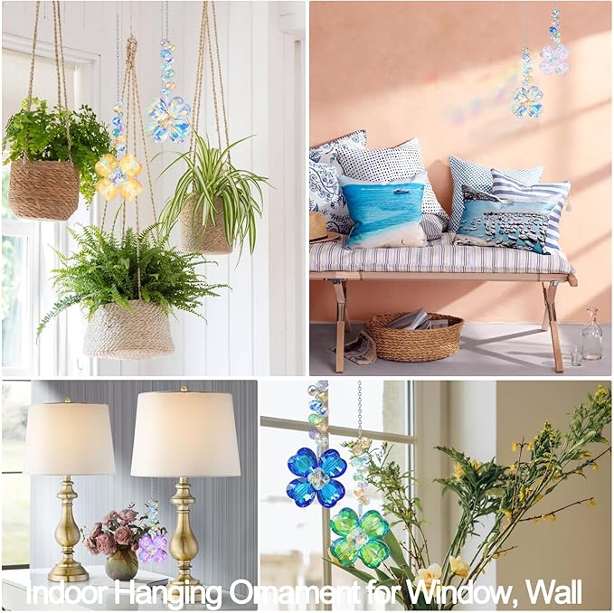 • Four leaf Clover Suncatcher: 6 crystal 4 leaf clover in different colors to create a vibrant and colorful space, bring countless rainbow dots in the sunshine for you
