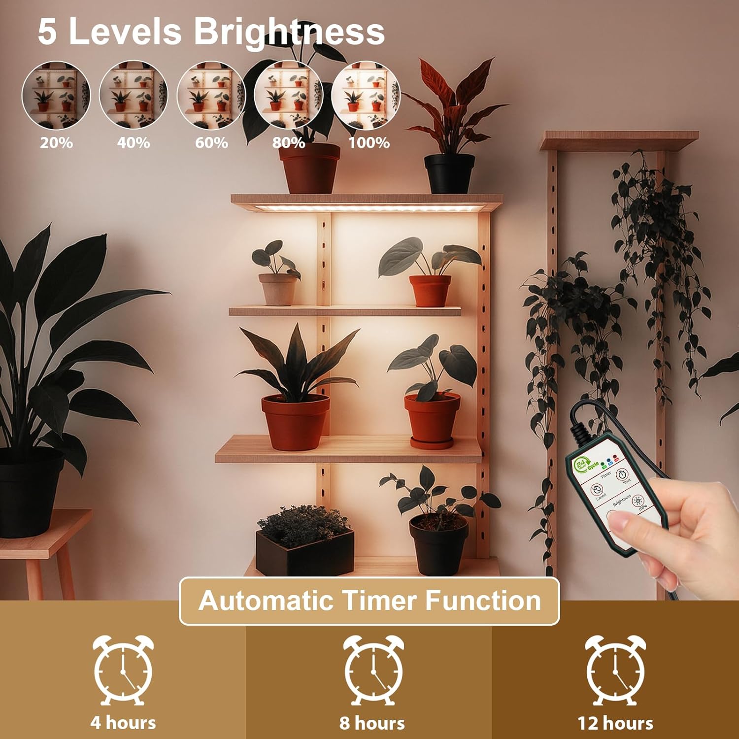 • Auto Memory Timer Flower Light for Hands-Free Plant Care : Features a built-in 4/8/12-hour cycle timer with memory function. Simply set it once for automatic daily operation—ensuring your plants receive consistent light even when you're on vacation or busy. A true set-and-forget lighting system for worry-free plant growth.