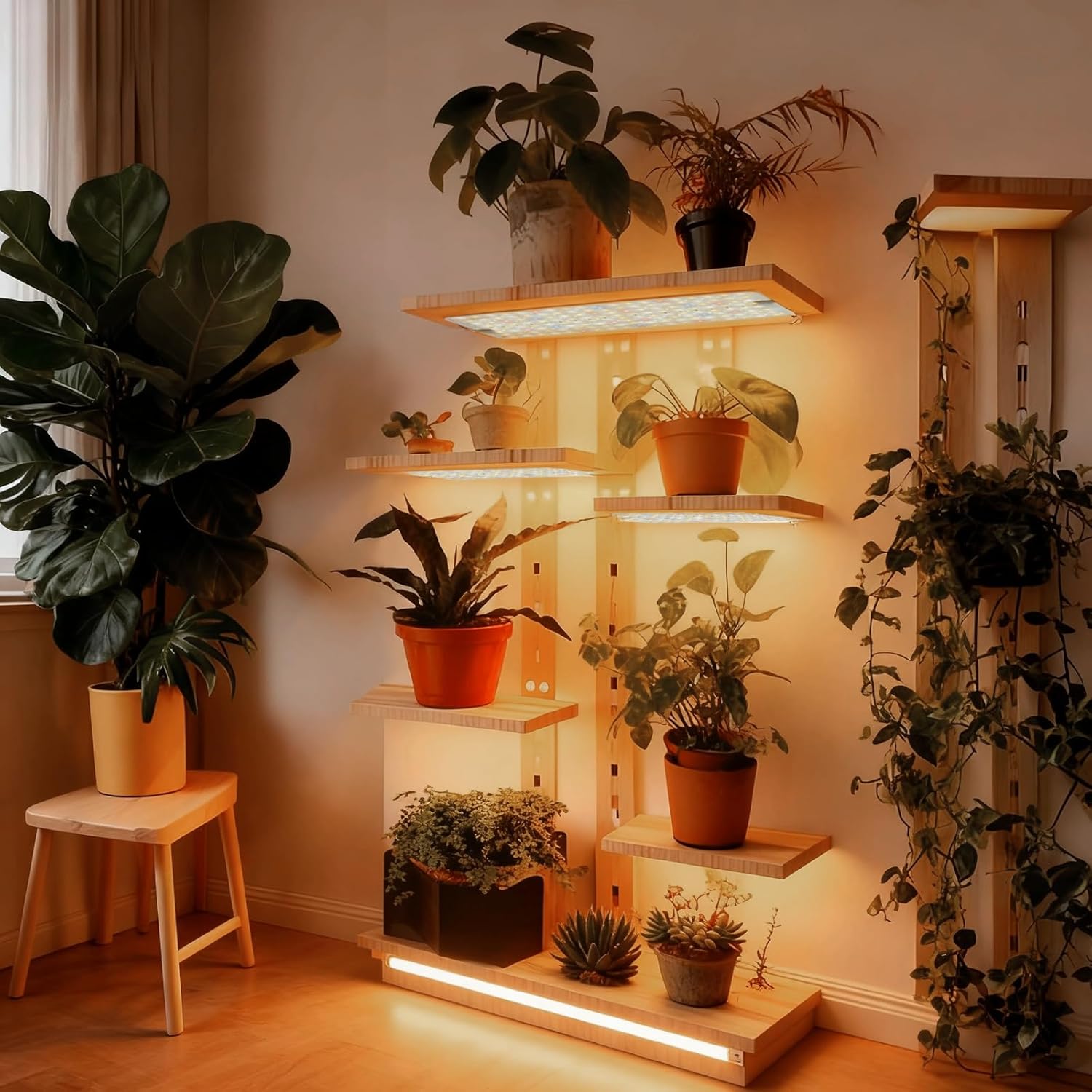• Ultra Slim Seed Starting Light Strips with Easy Installation Kit: Featuring a discreet, minimalist design that blends seamlessly into any home decor. Complete with adhesive tape and twist ties for tool-free installation, these versatile plant lights fit perfectly on shelves, cabinets, greenhouses, and other inside growing spaces.