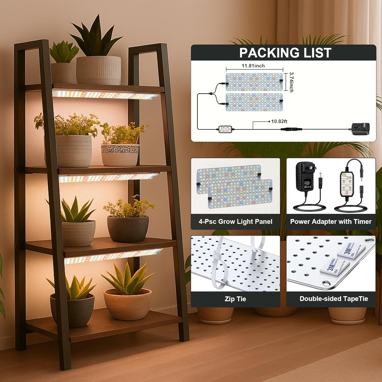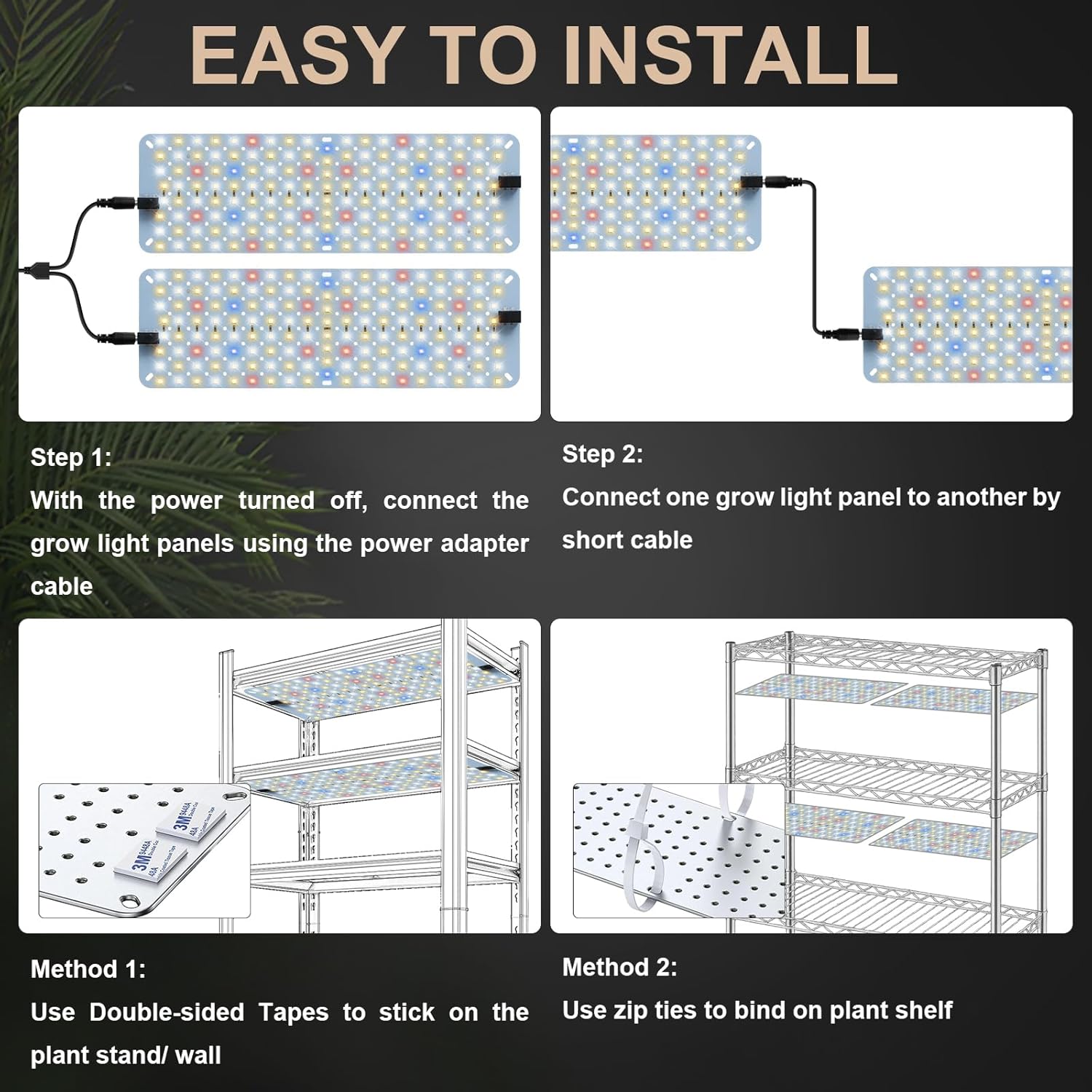 • Ultra Slim Seed Starting Light Strips with Easy Installation Kit: Featuring a discreet minimalist design that blends seamlessly into any home decor. Complete with adhesive tape and twist ties for tool-free installation these versatile plant lights fit perfectly on shelves cabinets greenhouses and other inside growing spaces.