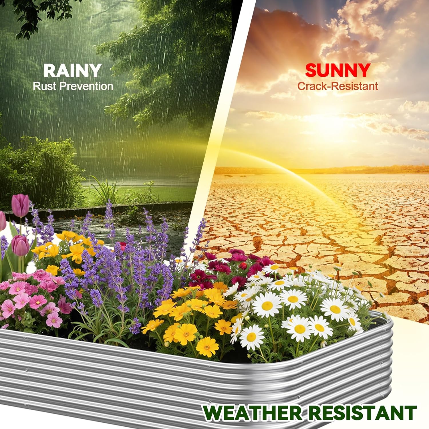 • 【Durable Galvanized Steel Construction】:Crafted with high-quality galvanized steel, this metal raised garden bed is built to last. The anti-corrosion coating ensures long-term durability, while the sturdy structure withstands heavy soil and weather conditions, making it perfect for outdoor use. Unlike traditional wooden garden beds, it resists warping and rotting over time.