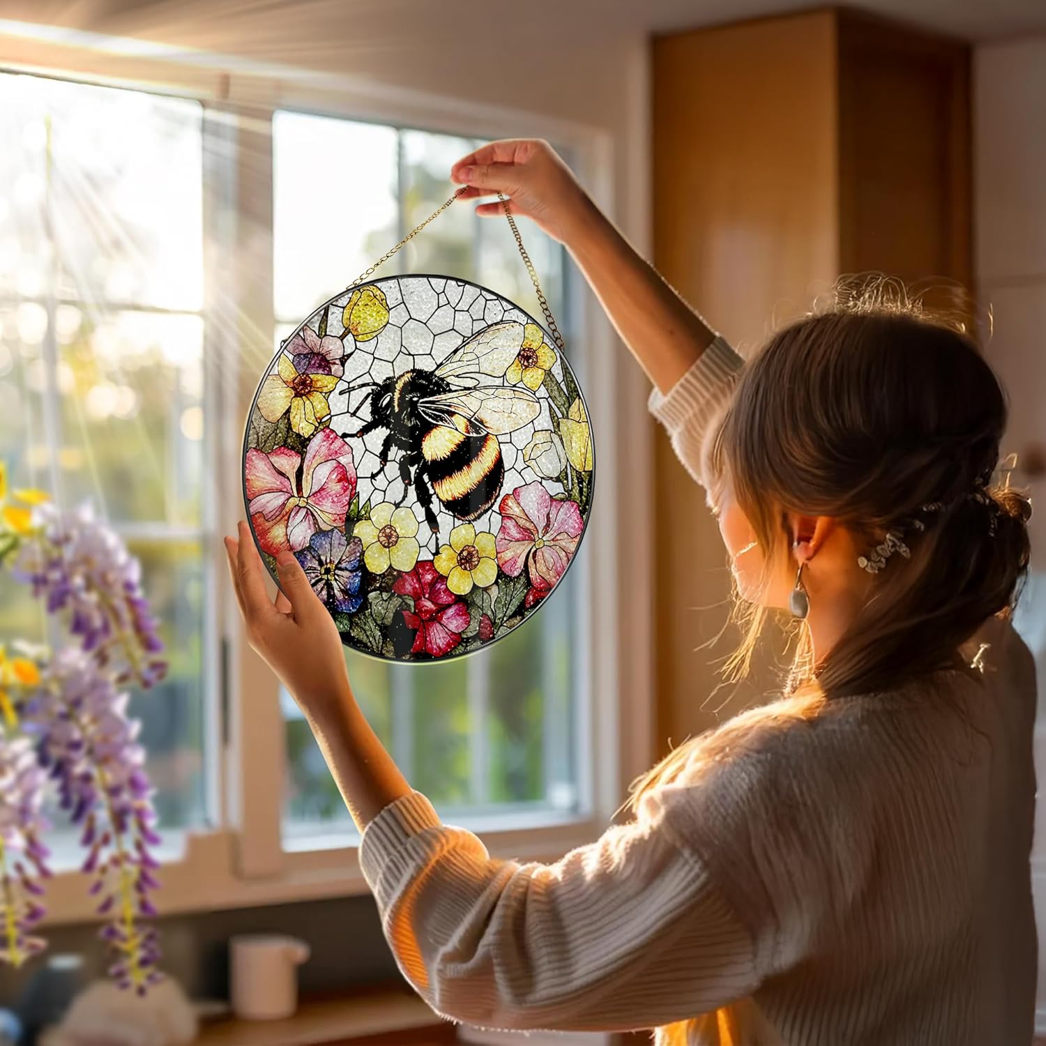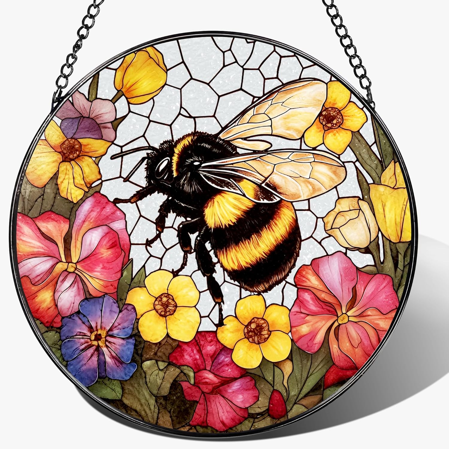 Stained Glass Window Hanging, 8 Inch Bee Stained Glass Ornament, Suncatchers for Windows Hanging, Window Decor, Gift for Garden Lover, Teacher Gift, Holiday, Birthday Gifts for Women Mom and Grandma