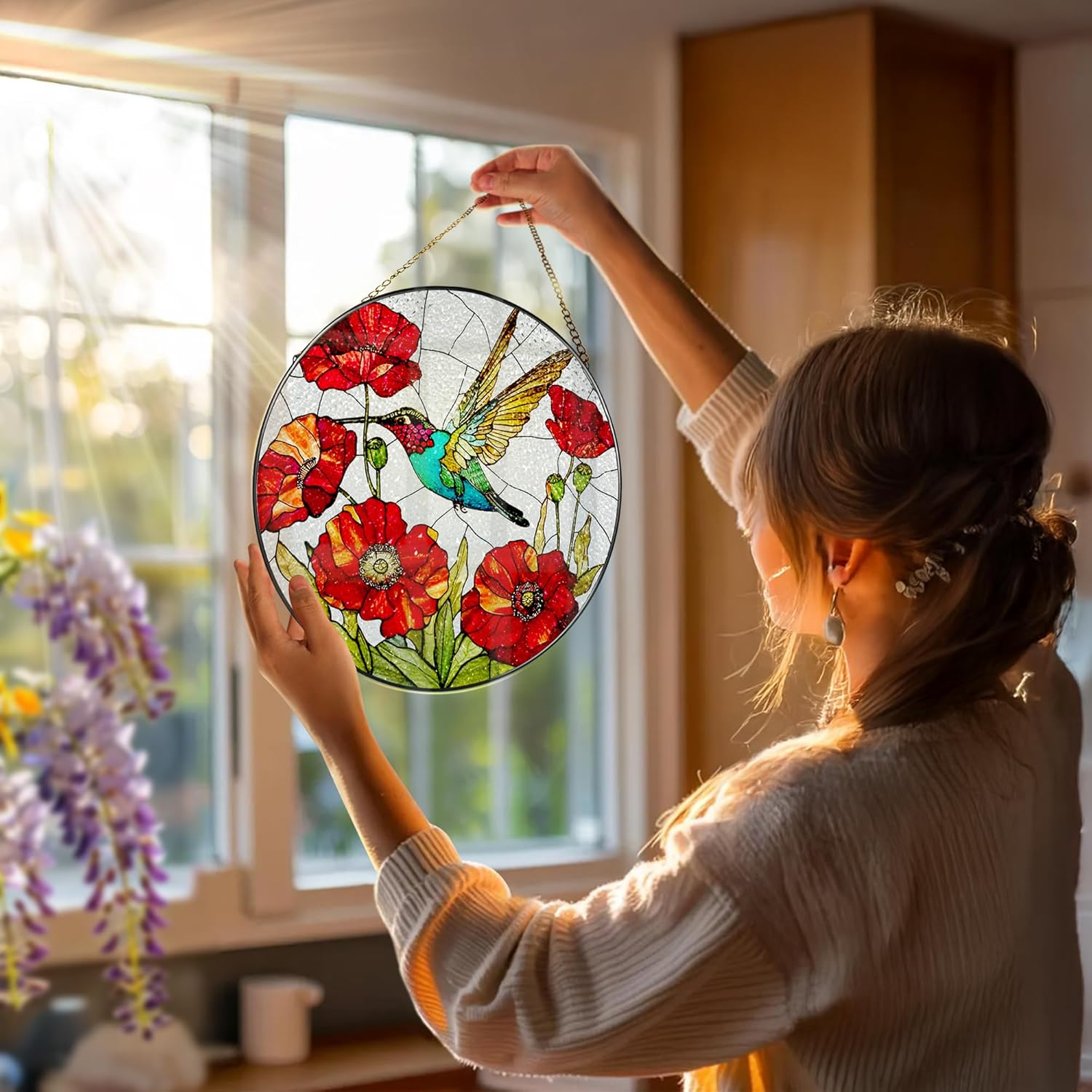 Stained Glass Window Hanging, 8 Inch Hummingbird Stained Glass Suncatcher, Sun Catcher Indoor Window, Hummingbird Decor, Gifts for Mom, Gifts for Grandma, Mothers Day, Christmas, Birthday Gift