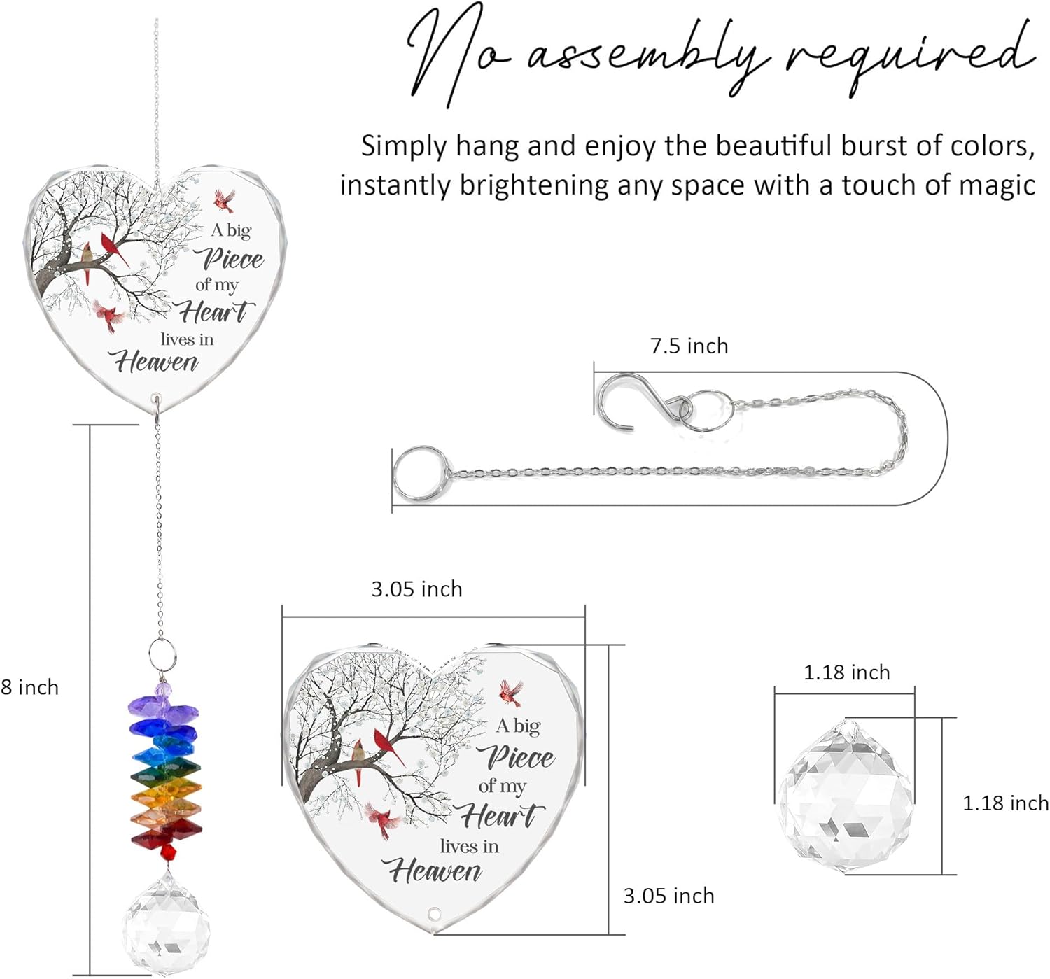 • โค๏ธ Heartfelt Memorial Ornament: Featuring the touching phrase "A big piece of my heart lives in heaven" with beautiful cardinal birds, symbolizing love and remembrance, this crystal ornament serves as a comforting keepsake for those honoring the memory of loved ones