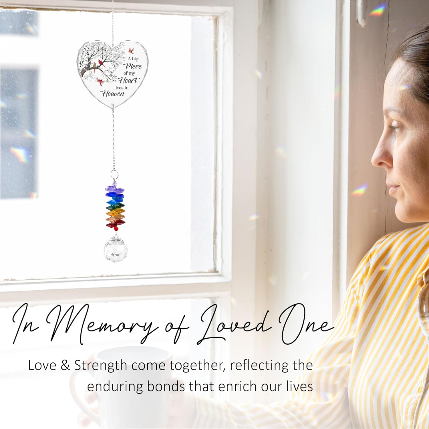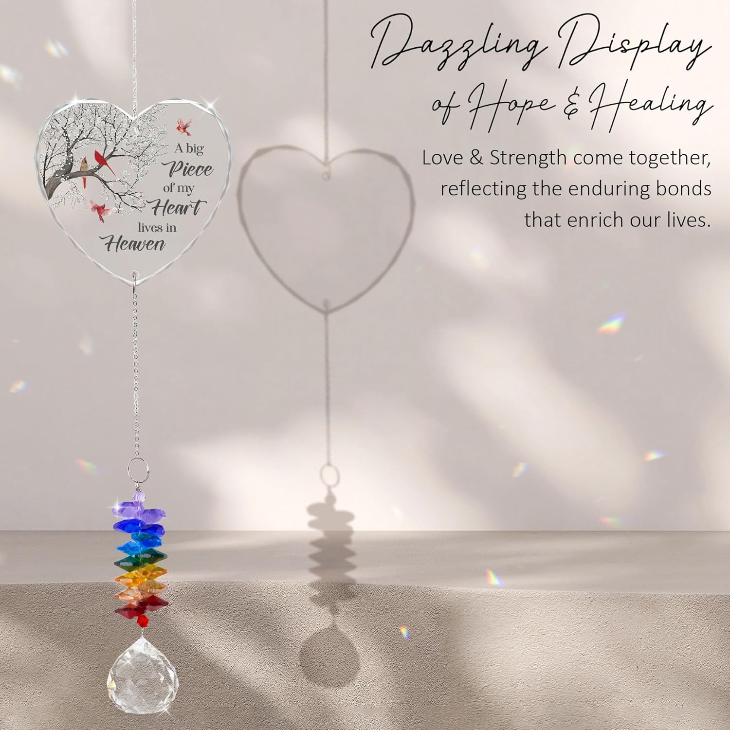 Glass Suncatcher Ornament - A Big Piece of My Heart Lives in Heaven - Sympathy Gifts for Loss of Loved Ones - Christmas Tree Remembrance Hanging Pendant - Crystal Rainbow Maker