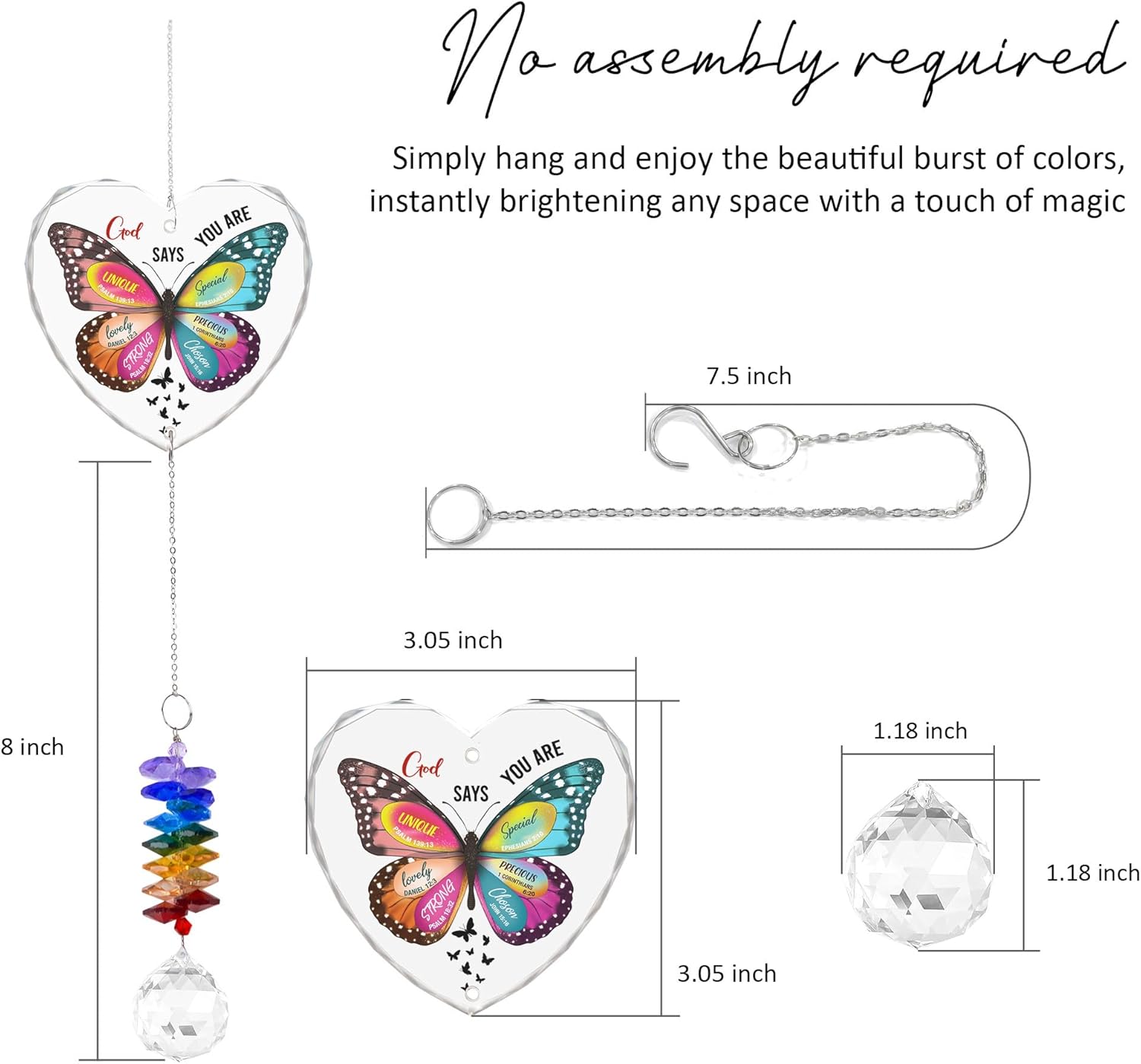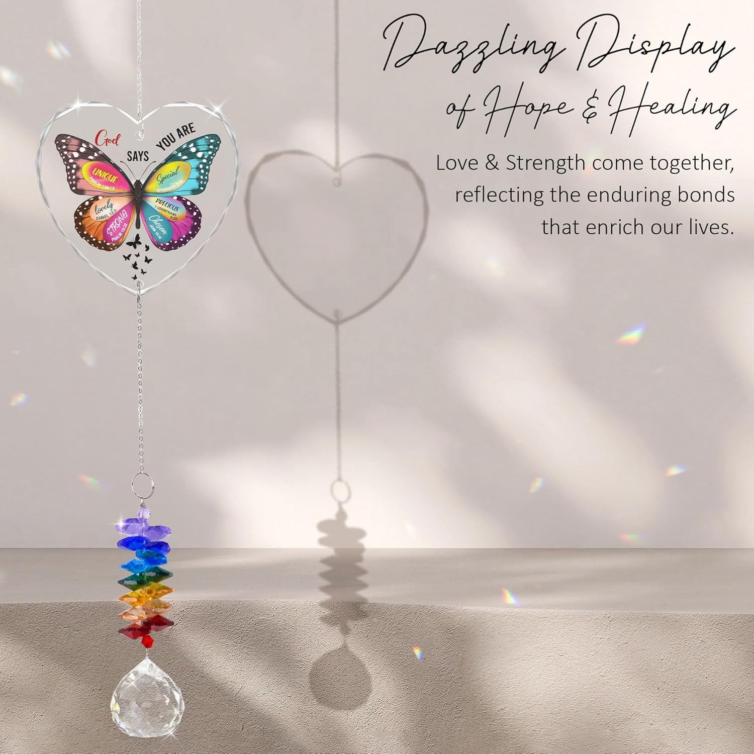 • ๐Ÿฆ‹ Inspirational Butterfly Design: This 3.05" heart-shaped glass ornament features a vibrant butterfly with the uplifting message โ€œGod Says You Areโ€ and affirmations like Unique, Special, Lovely, Precious, Strong, and Chosen, inspiring faith and self-worth every day.