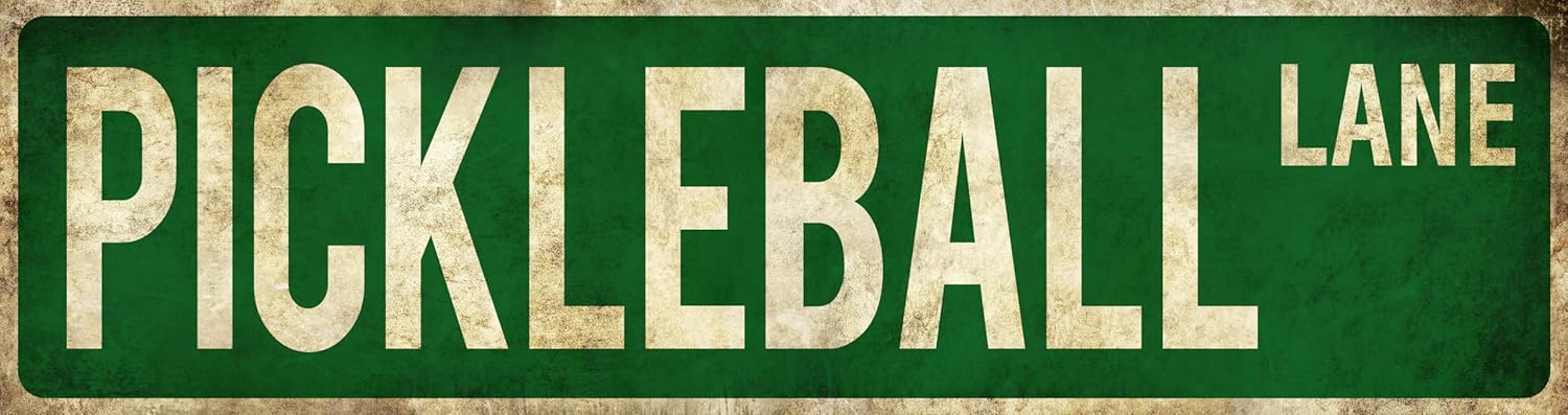 • VINTAGE DESIGN: Classic Pickleball-themed street sign with distressed lettering on a deep green background for authentic vintage appeal