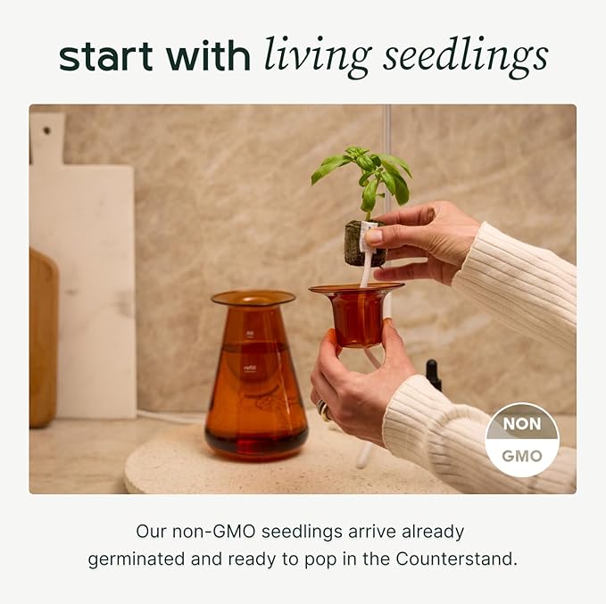 Counterstand Set – Vase Plant for Indoor Edible Garden Kit for Herbs & Lettuce – Small-Space Hydroponic System – Home Decor & Gifting – No Glow Lamp