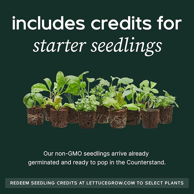 • Choose your plants: Comes with 3 live seedlings to start your harvest. Varieties are selected from a range of options and shipped separately from Lettuce Grow farms.
