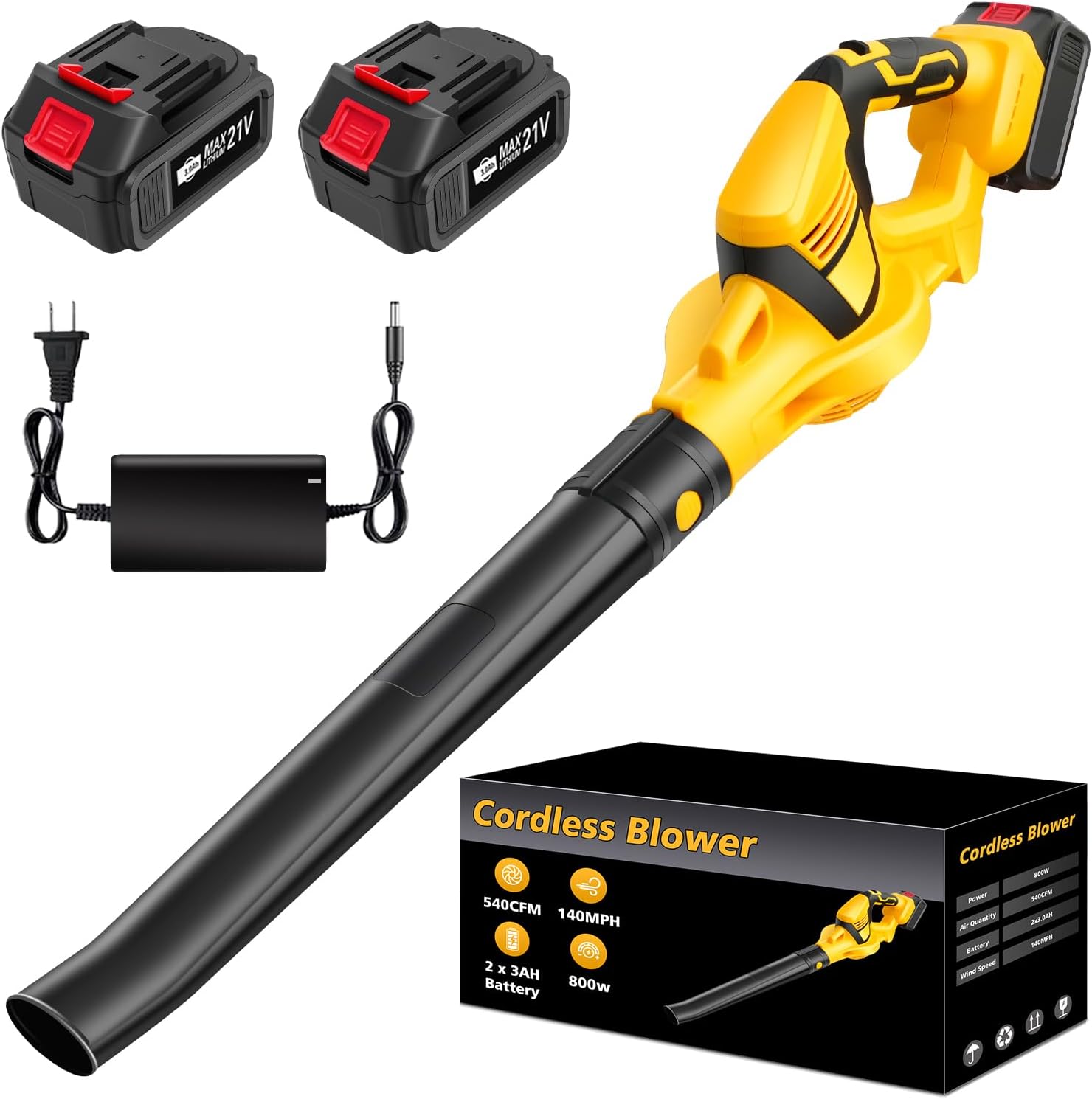 Leaf Blower Cordless, 21V Cordless Blower with 2 x 3.0Ah Battery, 540CFM 140 MPH Battery Powered Leaf Blower, Lightweight Handheld Blower for Lawn Care, Patio, Dust, Blowing Leaves, Snow