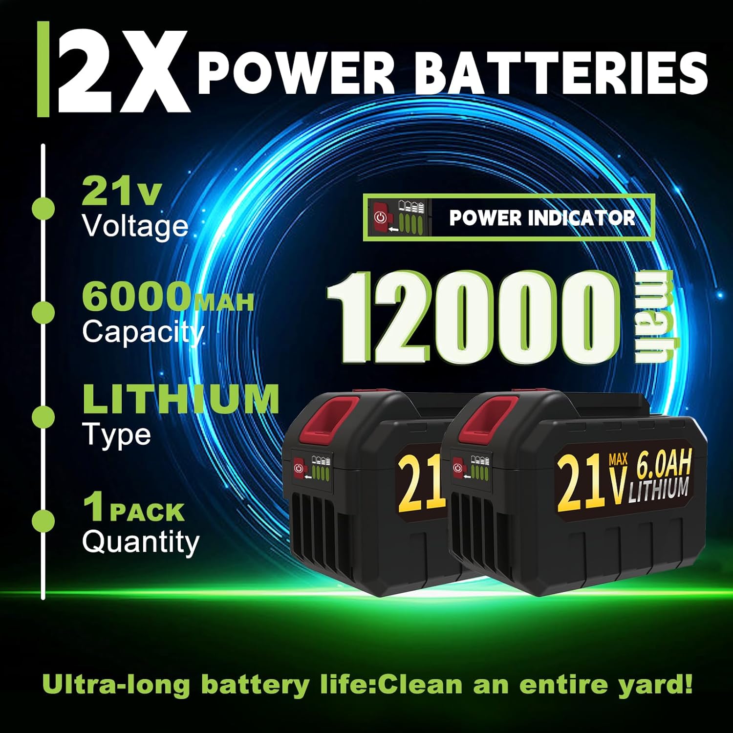• 【Long-Lasting 6.0Ah Battery with LED Power Display】This leaf blower cordless with battery and charger comes with a powerful 6.0Ah lithium battery that easily supports full-yard cleaning on a single charge. The built-in LED display shows real-time battery status, allowing you to manage power efficiently and work smarter for longer. For best performance, please fully charge the battery before first use, and allow it to rest for 5–10 minutes after discharge before recharging.