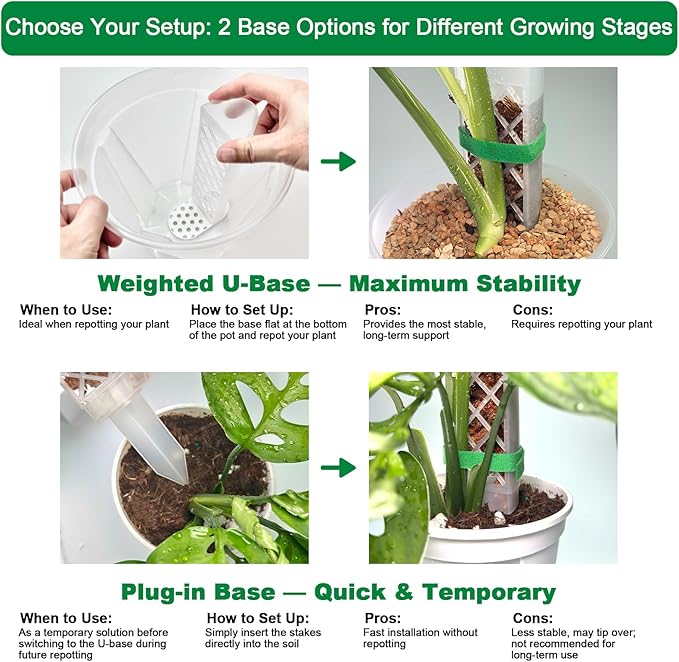 • [Ideal for Monstera and other climbing plants]: This moss pole set is designed to provide a moist environment for aerial roots. The grid structure of our moss poles is wide enough to allow the aerial roots of large plants like Monstera to pass through smoothly, while the innovative base provides stable support. Once your plant's aerial roots have grown into the moss column, wait for it to sprout a leaf,it will surely surprise you.