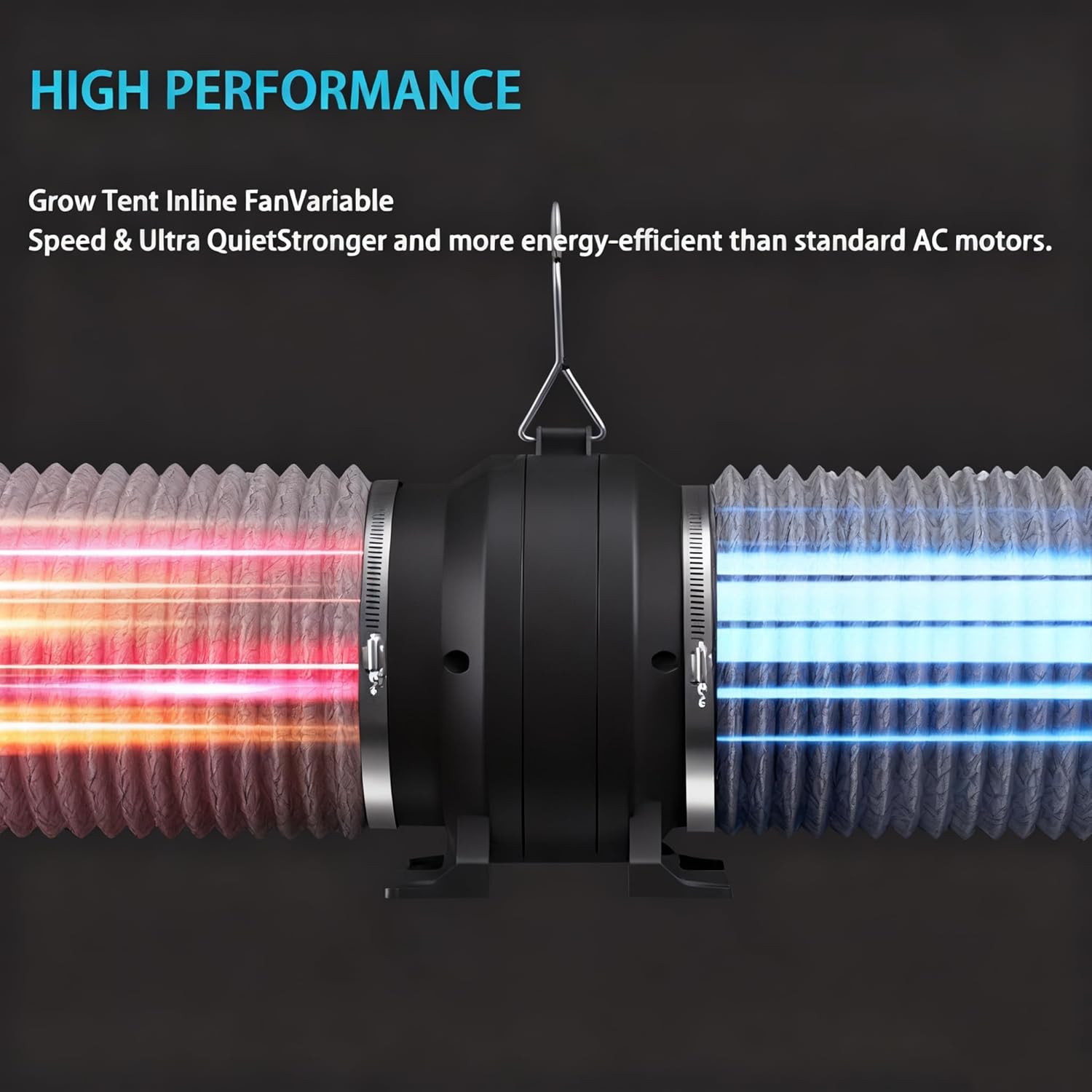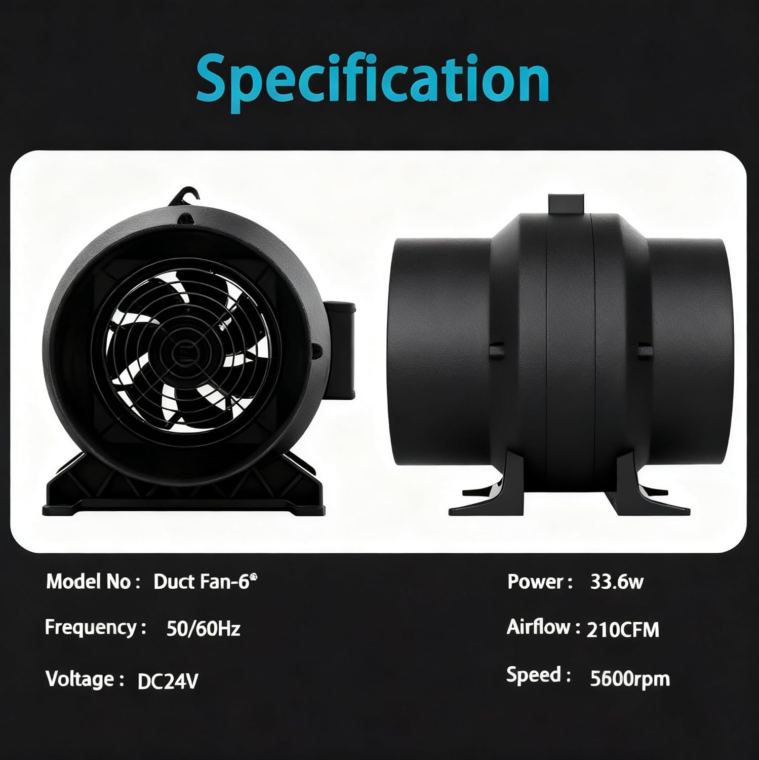 • MELONFARM 6" 260 CFM Inline Duct Fan with E12 Speed Controller, Ventilation Exhaust Fan for Cooling Booster, Grow Tents, Hydroponics