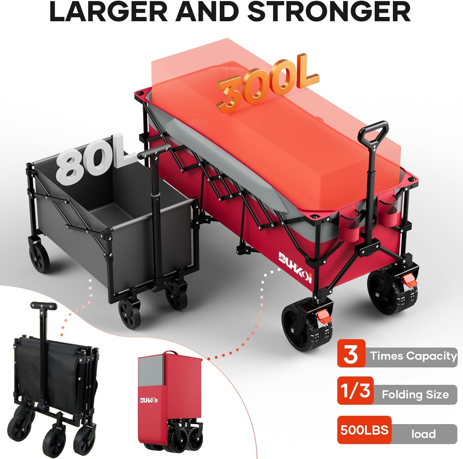 - Heavy Duty & Durable: Built with a reinforced steel frame and 600D Oxford fabric, wagon cart foldable can handle up to 500lb while remaining lightweight and easy to maneuver. The DUHKOI Heavy Duty wagon is tough enough for heavy loads, yet compact for everyday errands.