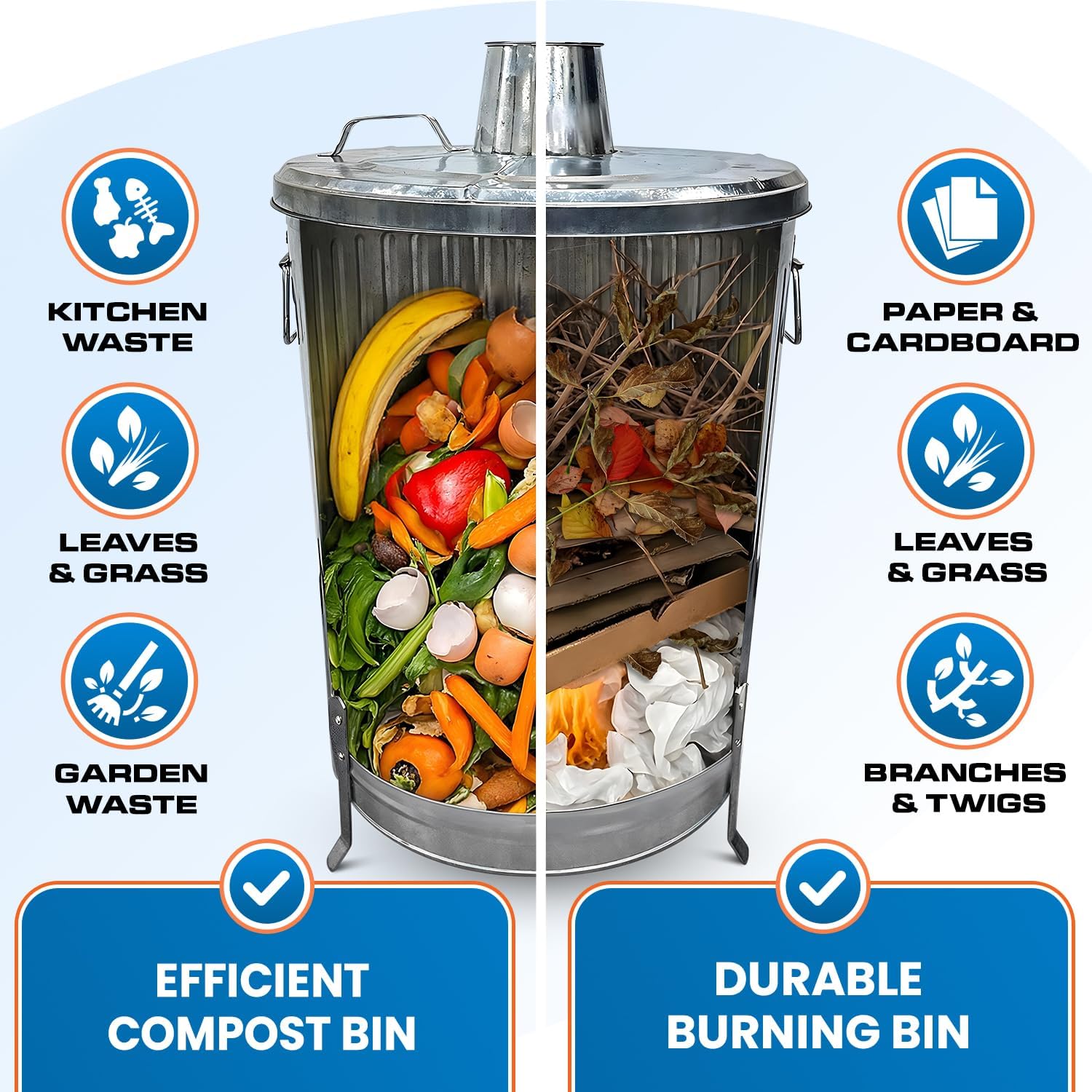 • Multi-Purpose Outdoor Bin – Use as a trash burning container, compost bin, or incinerator. Perfect for reducing garden waste, burning dry paper, wood, or recycling food scraps into natural compost.