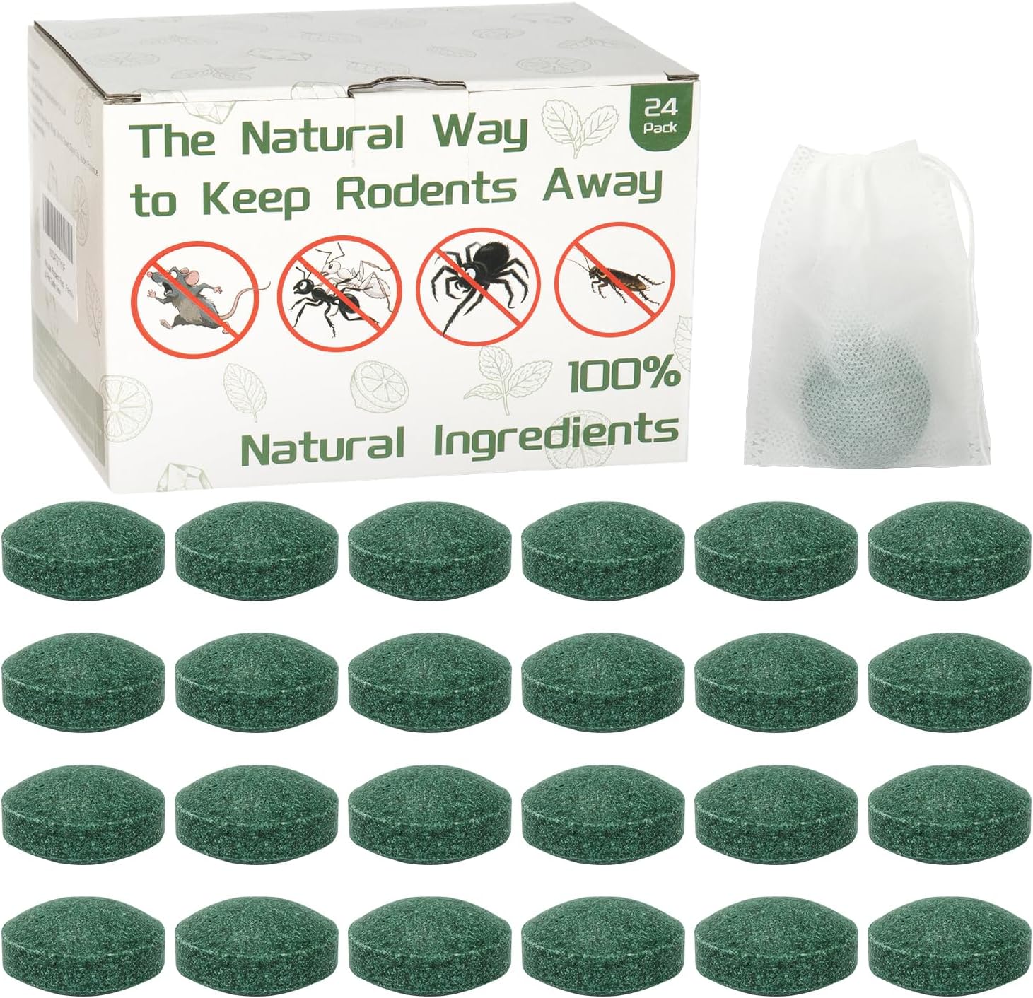 Mouse Rodent Repellent, 24pcs Peppermint Lemon Oil Mice Repellent for Squirrel Rats Spider Pests, Natural Mouse Traps for Indoor Outdoor Use, Keep Rodents Away from Garden and Home, Family & Pet Safe