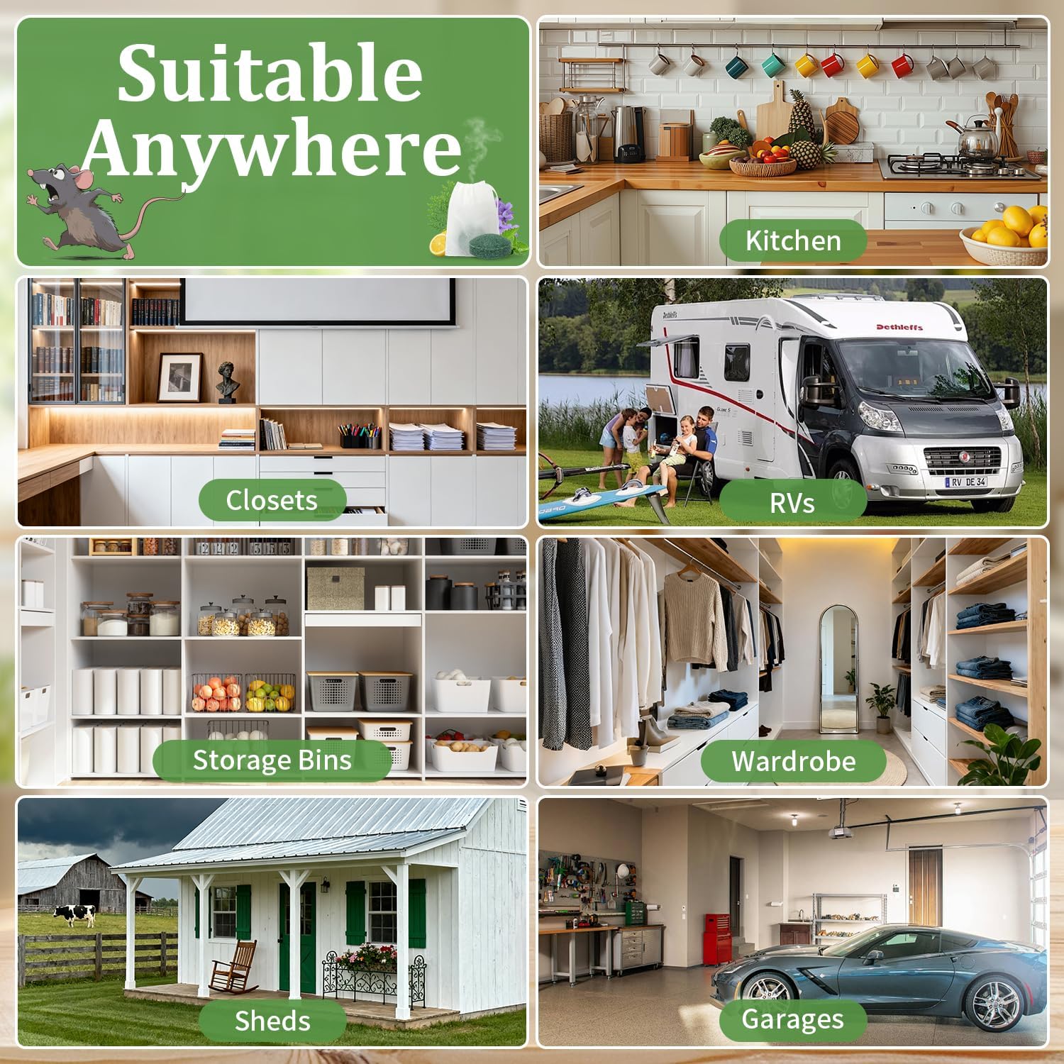 • 【Easy to Use】Simply remove the repellent from its sealed packaging and place into the pouch. Then tighten the pouch and position in enclosed spaces to deter rodents, ants, spiders and cockroaches.