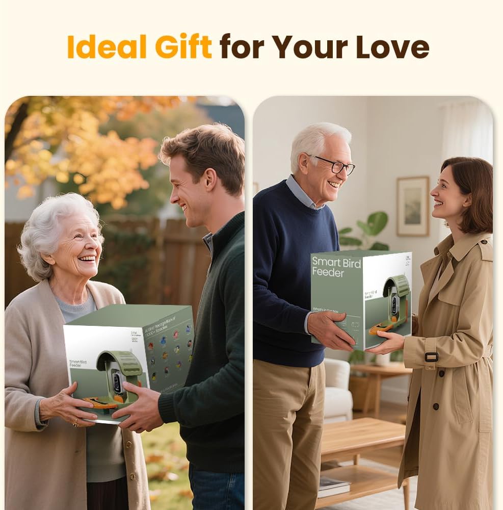 - An Ideal Suprise for Everyone. It's a source of fun and education for the whole family not just for bird enthusiasts. For kids, it's a great way to learn about different bird species and nature. Watching the birds can spark their curiosity and imagination. Pets also enjoy the entertainment provided by the smart bird feeder with camera. Its unique appearance makes it a decorative addition to your backyard. As an ideal gift for everyone, it brings joy and beauty to any home.