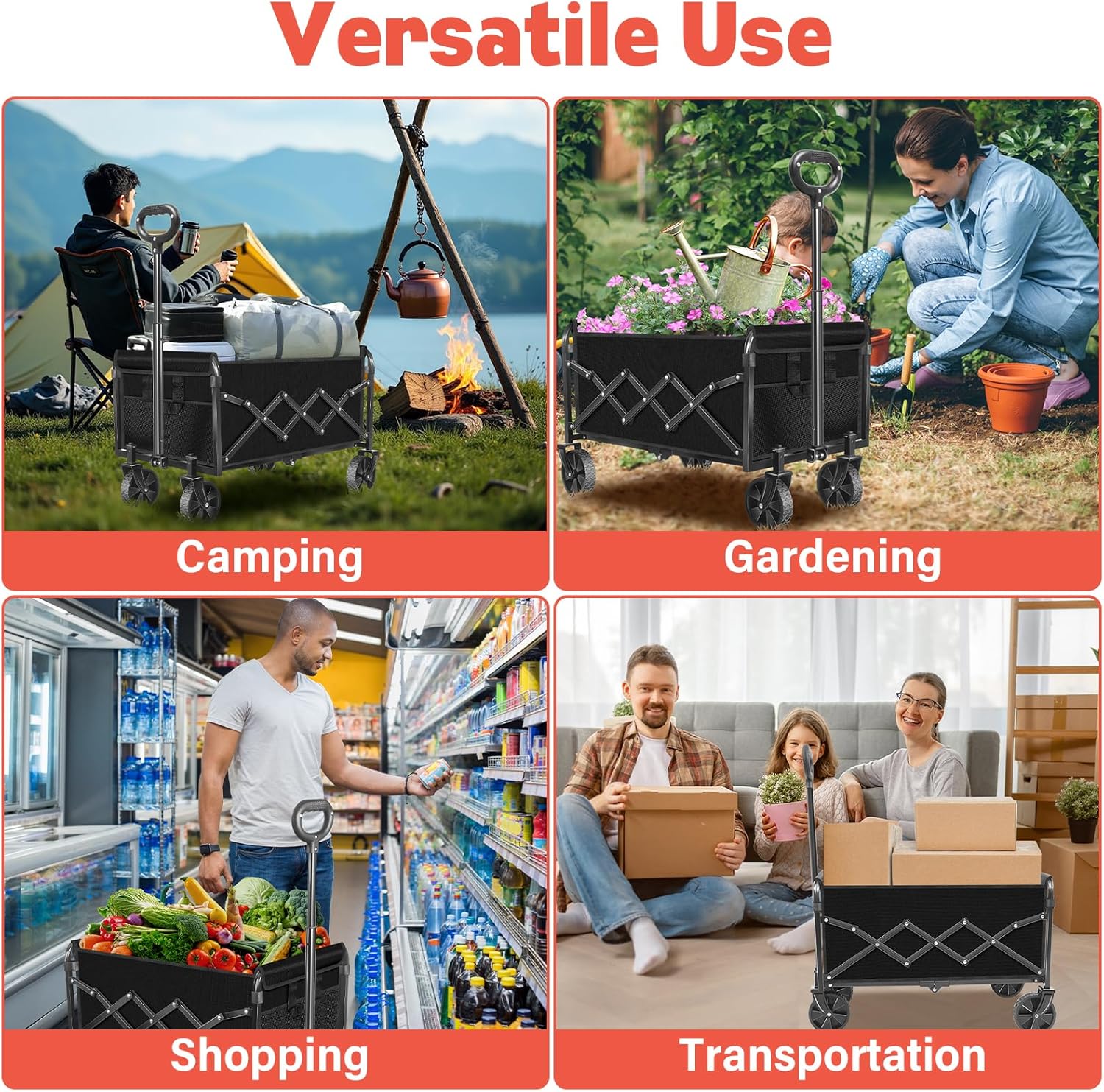 • Multi-Purpose Foldable Collapsible Cart: Your ideal outdoor companion for camping, picnics, grocery shopping, gardening, sports, and travel. This folding utility wagon adapts to every adventure.