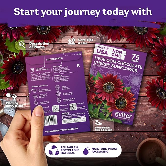 • Easy Sowing & Care: Plant chocolate cherry sunflower seeds 1/2 in deep, 16 in apart in well-drained soil; sprouts in 1-2 weeks and flourish with watering—ideal sunflower seeds to grow in flower gardens.