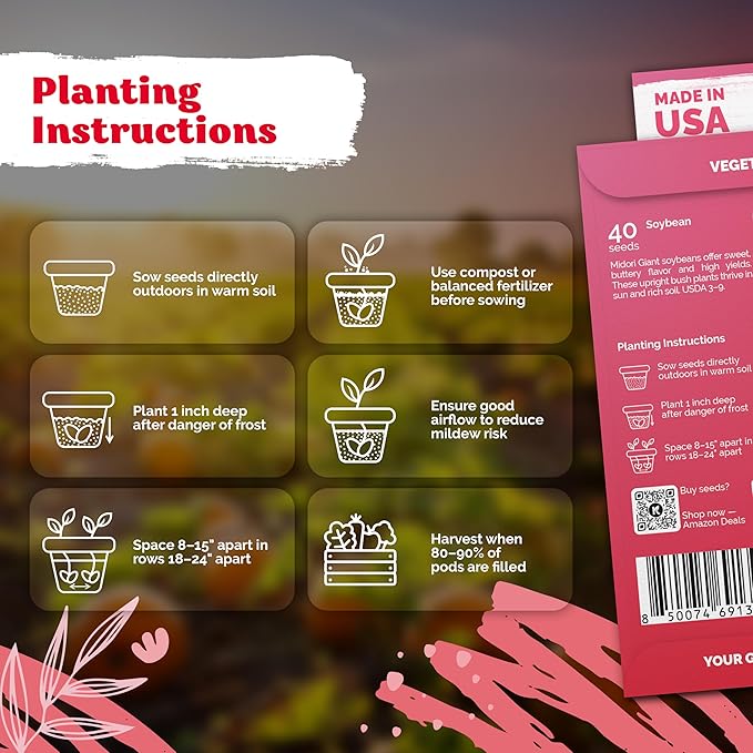 • Easy Direct Sow: edamame seeds for planting outdoors need 1" depth and 12" spacing, no trellis required; bush habit suits containers or raised beds, making veggie seeds ideal for small spaces.